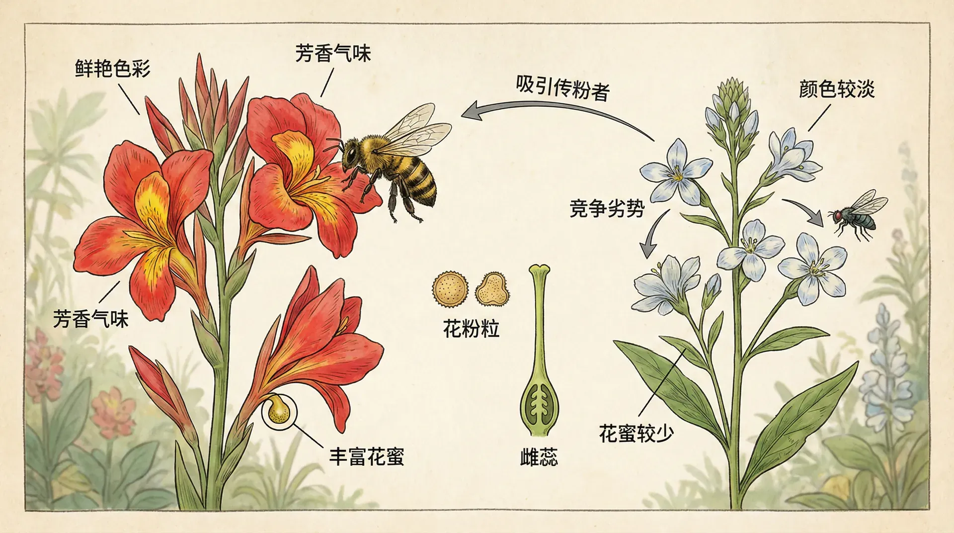 从表中可以看出,不同传粉方式的植物,其花朵投资策略差异很大。虫媒植物需要花大力气吸引昆虫,而风媒植物则靠数量取胜。自花授粉植物因为不需要传粉者,所以花朵最为节俭。