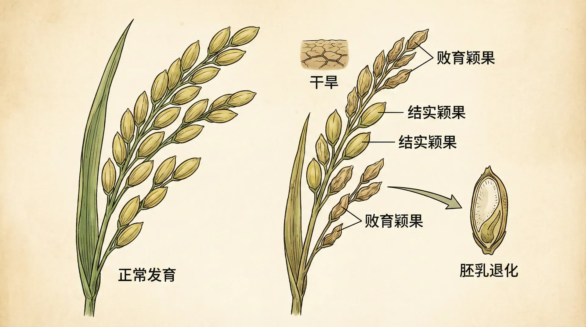 这不是病害,而是水稻主动的选择。水稻母本会评估每个胚的“质量”,包括它的遗传背景、发育时机和位置。那些质量不佳的胚会被选择性地中止供应养分,导致种子发育不全或流产。这对母本是有利的,因为她的资源有限,与其平均分配给所有后代(包括质量差的),不如集中投资给那些更有希望的后代。