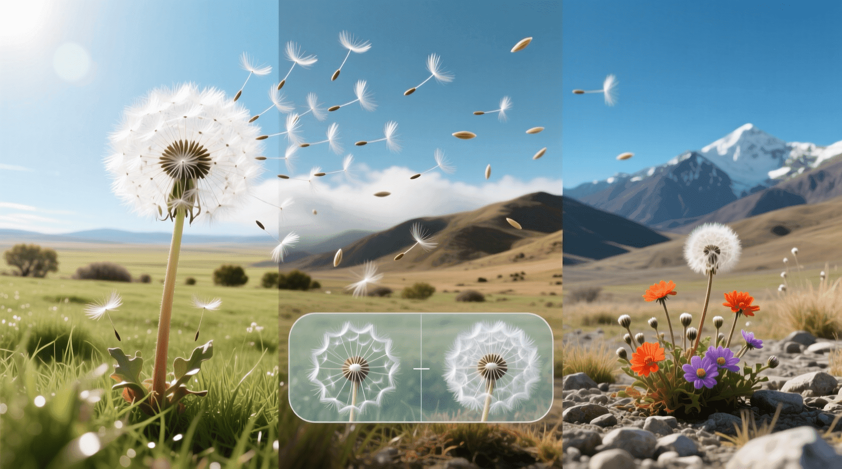 蒲公英属植物在中国分布广泛,从东部平原到青藏高原都有分布。研究发现,低海拔地区的蒲公英种子冠毛(就是那些白色的"小伞")发达,风一吹就能飞出上百米。但在青藏高原上的高山蒲公英,冠毛明显退化,有些种类甚至几乎没有冠毛。这符合空间异质性理论:高原环境孤立而特殊,种子飞出高原很难存活,自然选择反而青睐那些“待在原地”的个体。