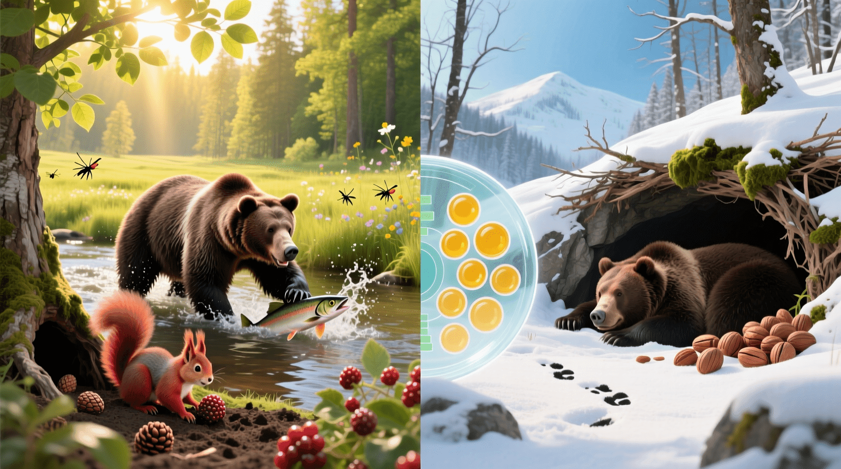 以东北地区的棕熊为例,它们在春夏秋三季拼命进食,将能量以脂肪形式储存起来。到了秋末,一只成年棕熊的体重可能比春天增加30-40%。这些储存的脂肪在冬眠期维持生命活动,甚至支持雌熊在冬眠中产仔和哺乳。这是一种典型的“储存策略”。