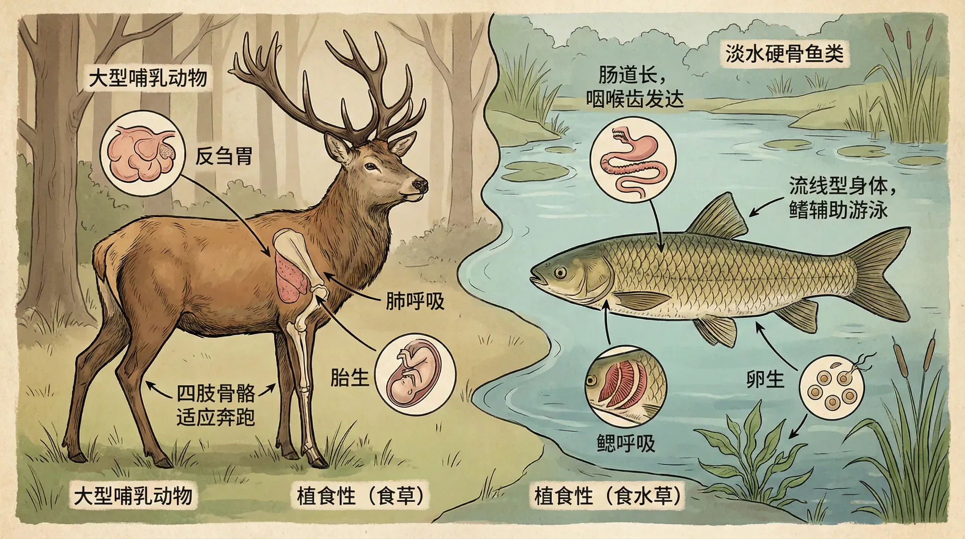 马鹿与草鱼的比较