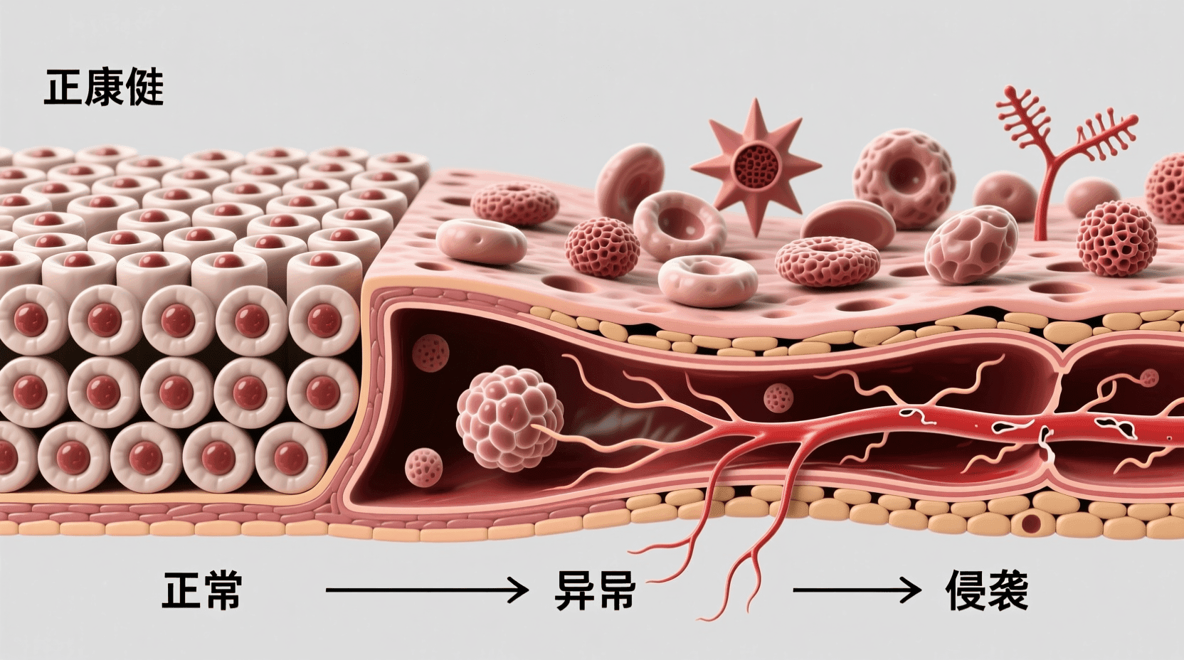 需要强调的是,细胞癌变通常不是由单一因素或单次突变引起的,而是多种致癌因子长期作用、多个基因发生突变的累积结果。这也解释了为什么癌症的发病率随年龄增长而增加,因为随着时间的推移,基因突变不断积累,癌变的风险也随之增加。