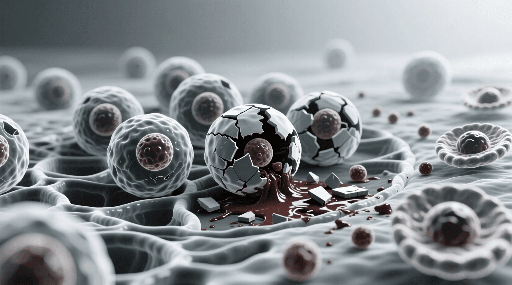 与细胞凋亡不同,细胞坏死是一种非程序性的细胞死亡,通常是由外界因素造成的病理性死亡。引起细胞坏死的因素包括缺血缺氧、物理损伤、化学毒物、病原体感染等。