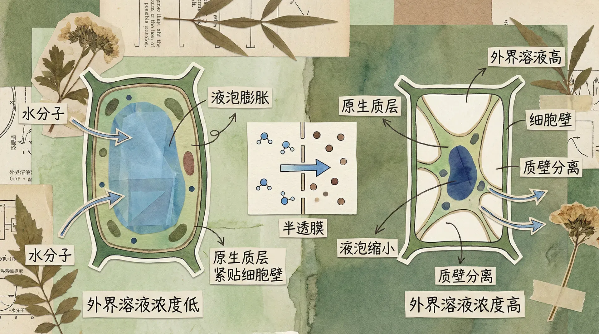 需要注意的是,如果外界溶液浓度过高,或质壁分离持续时间过长,细胞失水过度可能无法复原,最终导致细胞死亡。这也解释了施肥浓度过高时,会出现“烧苗”现象。