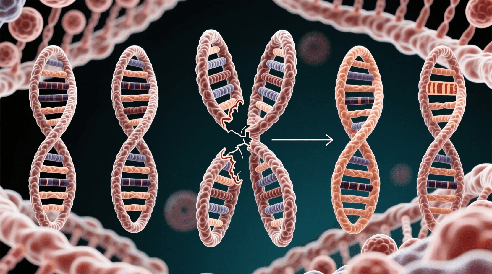 染色体断裂后,细胞内的修复系统会尝试修复这些损伤。然而,修复过程并不总是完美的。断裂的染色体片段可能以错误的方式重新连接,或者某些片段在修复前就已经丢失。这些错误的修复就导致了各种类型的染色体结构变异。