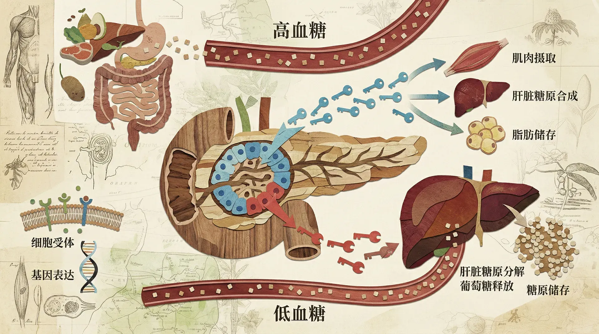 血糖,即血液中的葡萄糖,是人体最重要的能量来源。正常人空腹时血糖浓度维持在3.9-6.1毫摩尔/升,这个稳定的浓度对于细胞正常生命活动至关重要。那么,血糖从哪里来,又到哪里去呢?