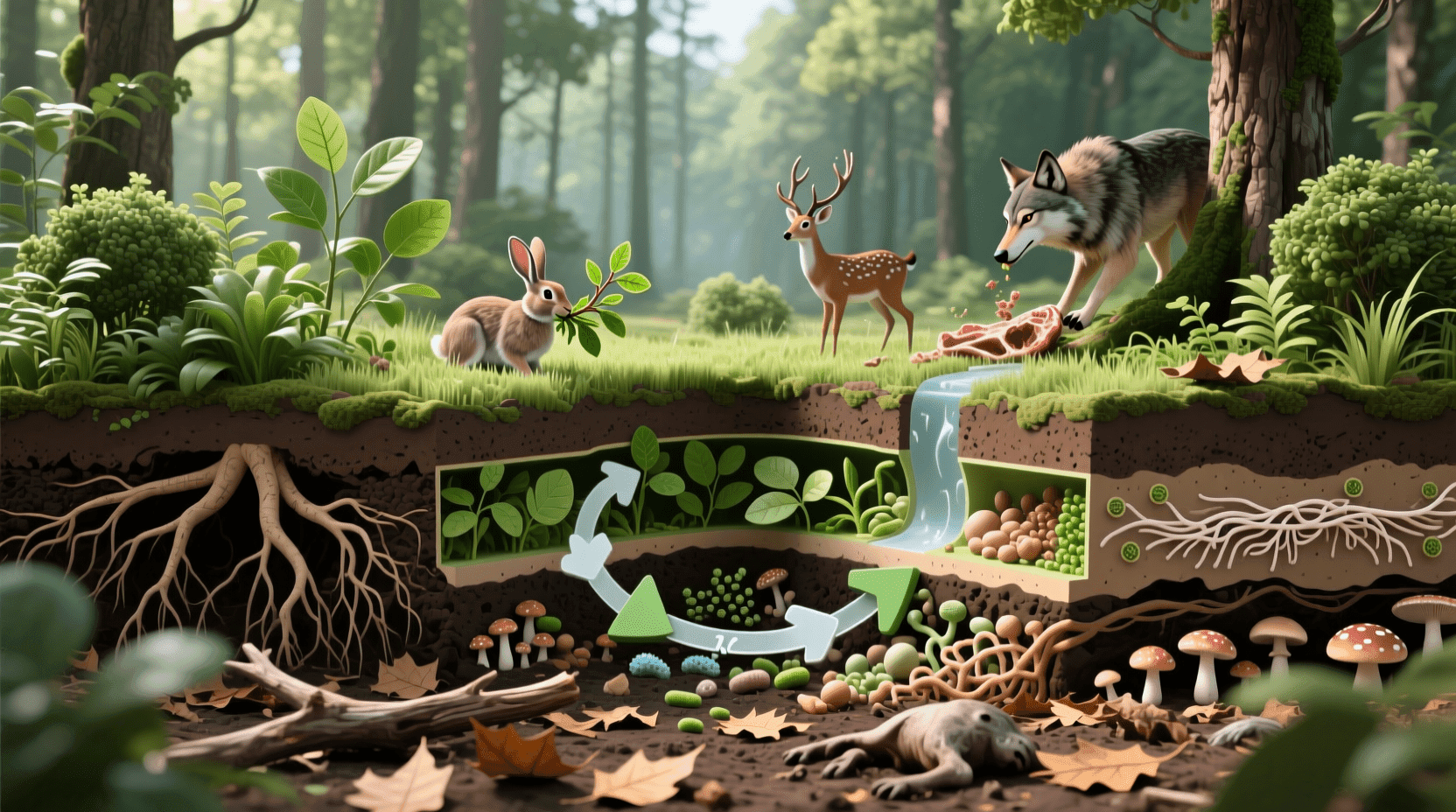当我们观察一片森林时,会发现树木年复一年地生长,落叶不断堆积又逐渐消失,动物们在林间活动、繁衍生息。这一切生命活动都需要物质基础。组成生物体的碳、氮、磷、硫等化学元素从哪里来,又到哪里去呢?答案就在于生态系统的物质循环。