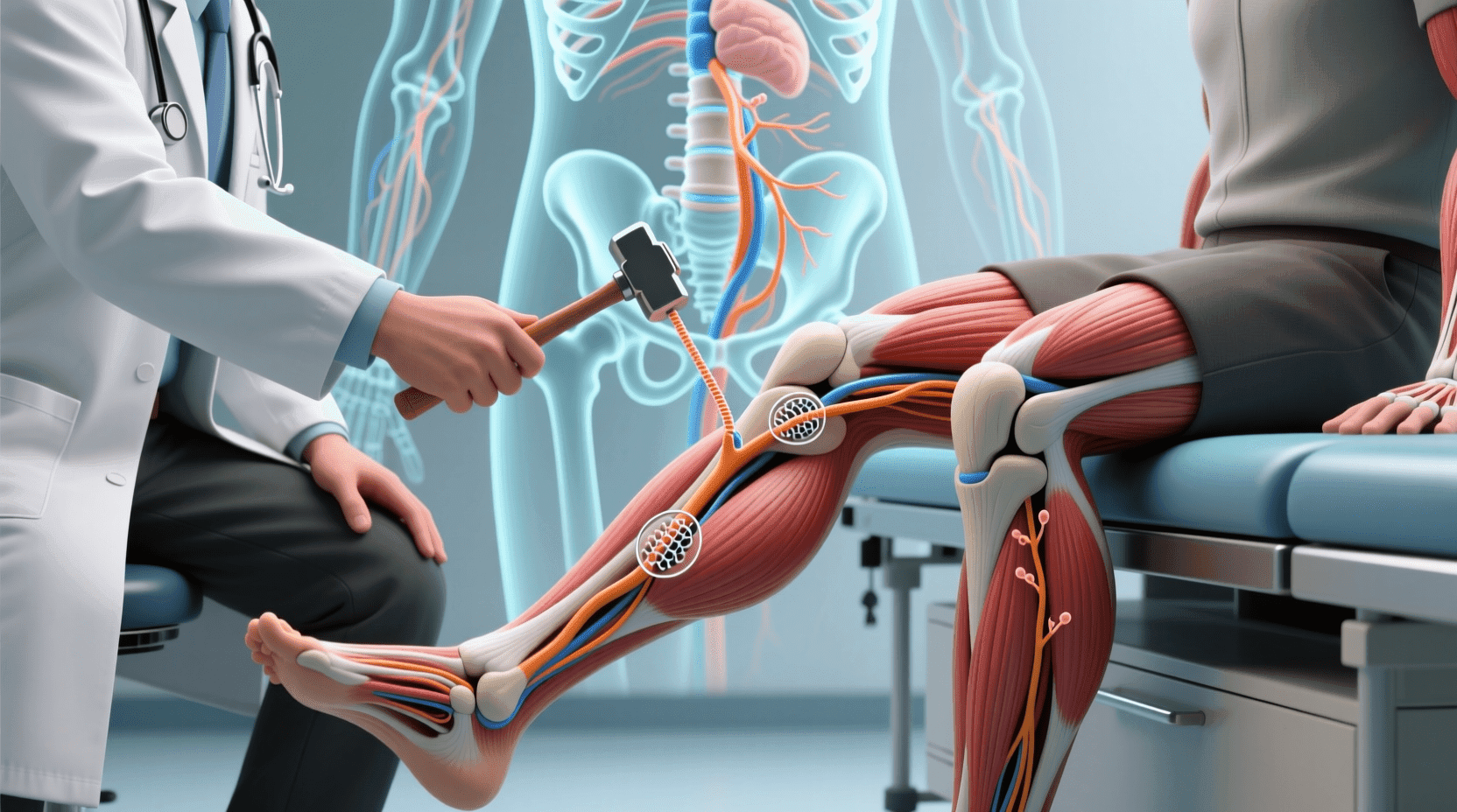例如,在膝跳反射中,当医生用小锤敲打膝盖下方,感受刺激的感受器首先将信号传给感觉神经元,感觉神经元通过树突接收刺激信号,再经由细胞体、轴突,把兴奋传递到脊髓中的中间神经元,中间神经元再把兴奋传递给运动神经元,运动神经元的轴突最终把信号传递到大腿肌肉,使其收缩,产生膝跳反应。在这个过程中,感觉神经元、运动神经元和中间神经元各自发挥着不同的作用。