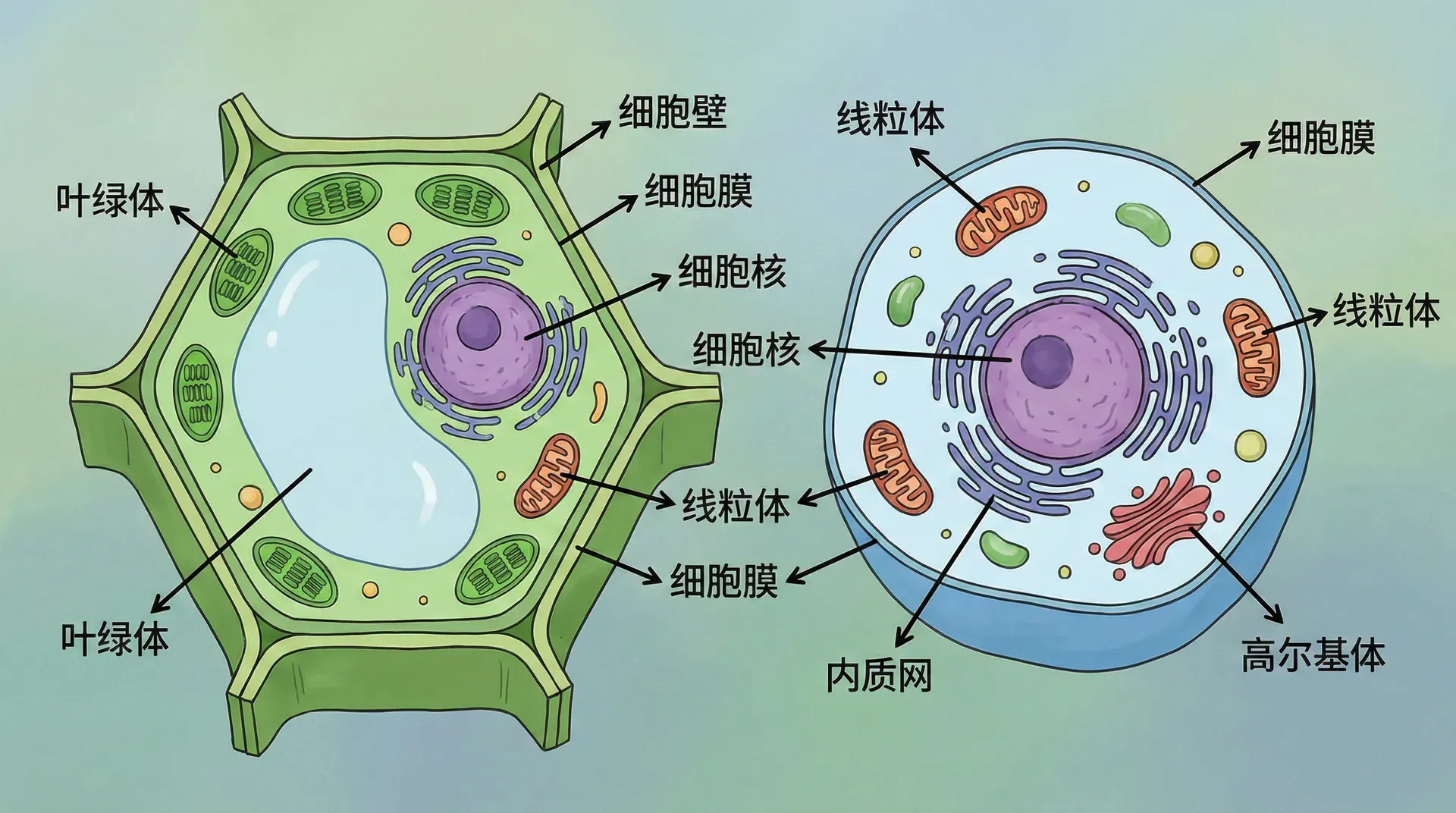 虽然动物细胞没有叶绿体,但在细胞质中有另一种重要的结构——线粒体。线粒体是细胞进行呼吸作用的场所,能够将有机物分解,释放能量,供细胞生命活动使用。线粒体被称为细胞的“动力车间”。实际上,植物细胞中也有线粒体,因为植物细胞同样需要通过呼吸作用获得能量。