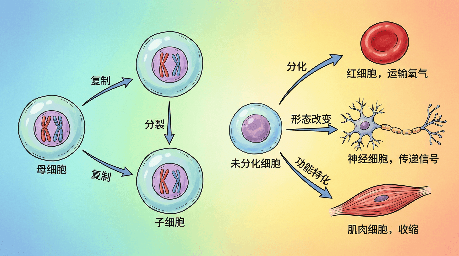 染色体是遗传物质的载体。在细胞分裂时,长长的DNA分子会高度缠绕,与特殊的蛋白质(组蛋白)紧密结合,成为可见的棍状结构——染色体。这就像把很长很细的线缠绕在轴上,便于整齐分配和保护。