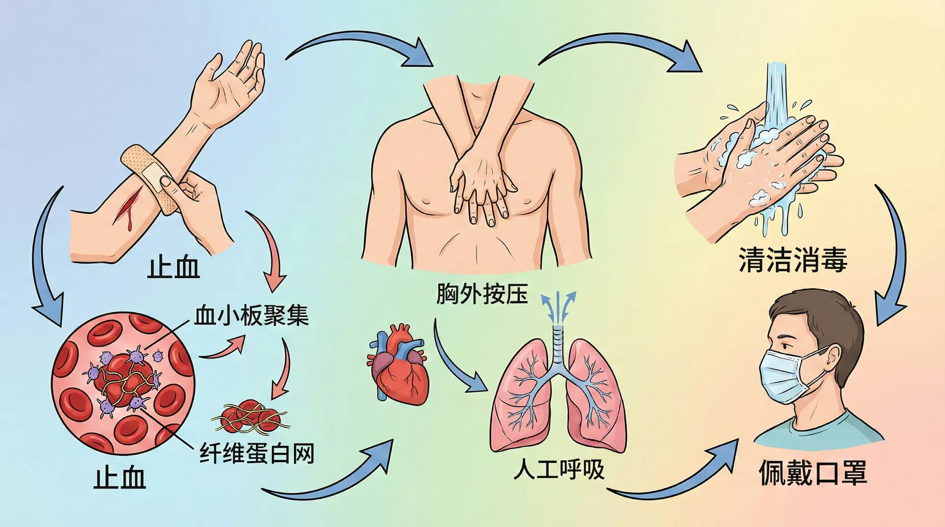 急救最重要的原则是先救命、再治伤。遇到紧急情况不要慌,评估环境安全后再给予救助,同时及时求助专业医疗力量。