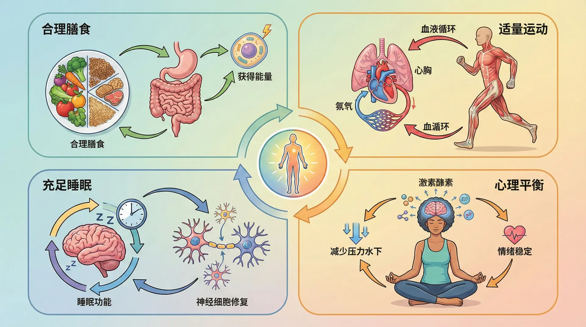 保持健康需要从多方面入手。合理的饮食为身体提供必需的营养,适当的运动增强体质,良好的卫生习惯预防疾病,充足的睡眠保证身心恢复,积极的心态维护心理健康。这些看似简单的生活习惯,却是健康的基石。青少年时期是生长发育的关键阶段,养成良好的健康习惯将受益终生。本章将系统介绍健康生活的各个方面,帮助大家建立科学的健康观念,掌握必要的健康知识和技能。