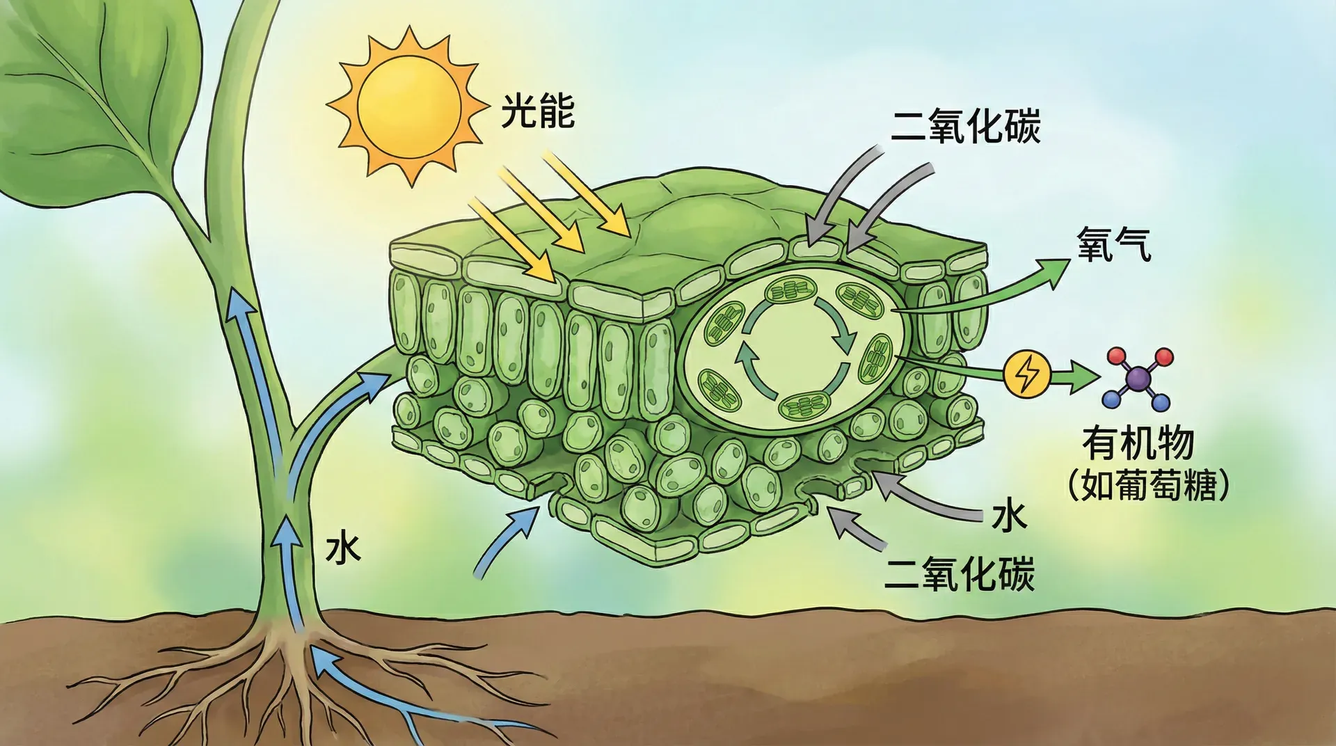 光合作用是生物界最重要的生理过程之一。绿色植物通过光合作用,利用光能将二氧化碳和水合成有机物,并释放氧气。可以说,地球上几乎所有生物的食物和能量,归根到底都来自光合作用。