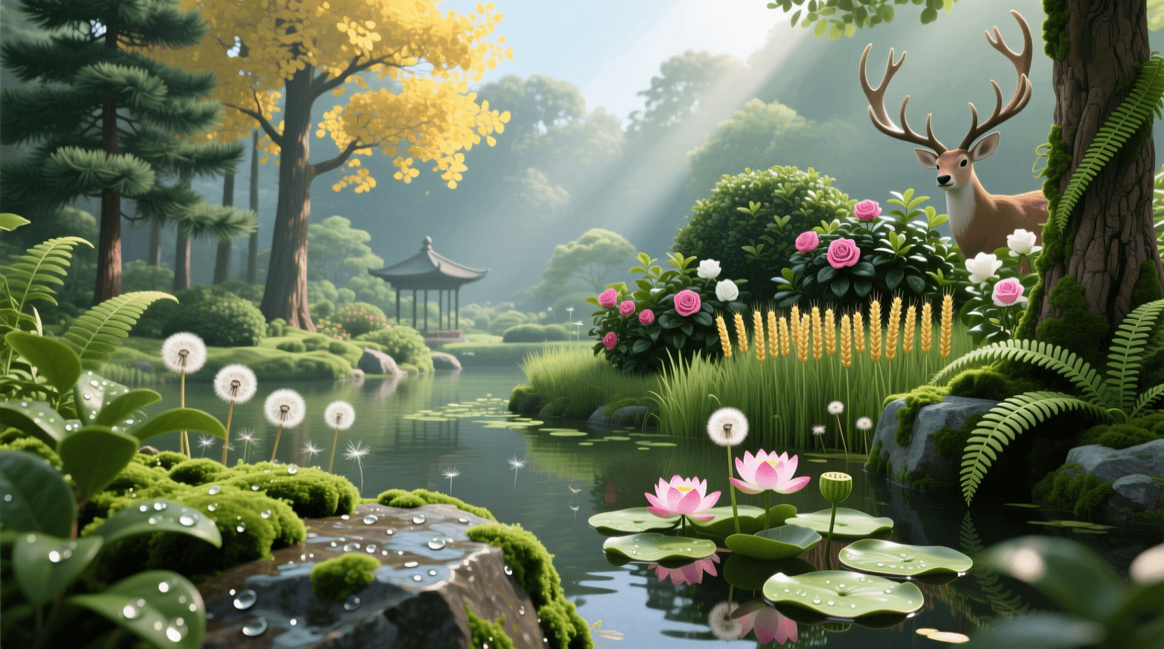 在校园里,我们可以观察各种植物。高大的树木,如杨树、柳树、槐树,都是被子植物中的乔木。灌木丛中的月季、杜鹃、茶花,也是被子植物。草坪上的草,如狗牙根、早熟禾,是被子植物中的禾本科植物。教学楼背阴处的墙上,可能长着绿色的苔藓。如果校园里有水池或假山,可能还能看到一些蕨类植物。
