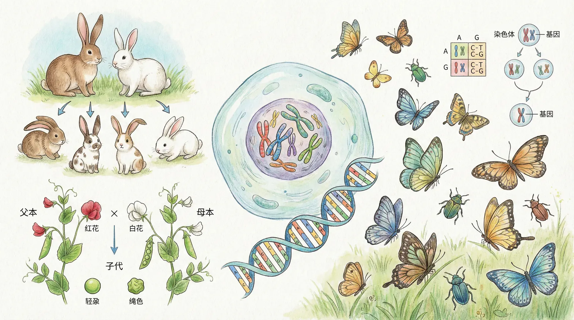 当我们在春天播下一粒西瓜种子,经过几个月的精心培育,收获的果实依然是西瓜,而不会长出苹果或者梨。这个看似平常的现象,却蕴含着生命世界最重要的规律之一——遗传。在我们的第一本生物学习中,我们了解了细胞的结构、生态系统的运作以及人体的奥秘。同时,我们对遗传和变异有了初步的认识。现在,让我们深入探索一个更加神奇的领域:生命是如何将自己的特征代代相传的。