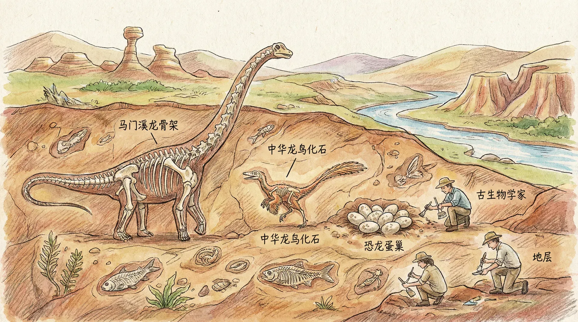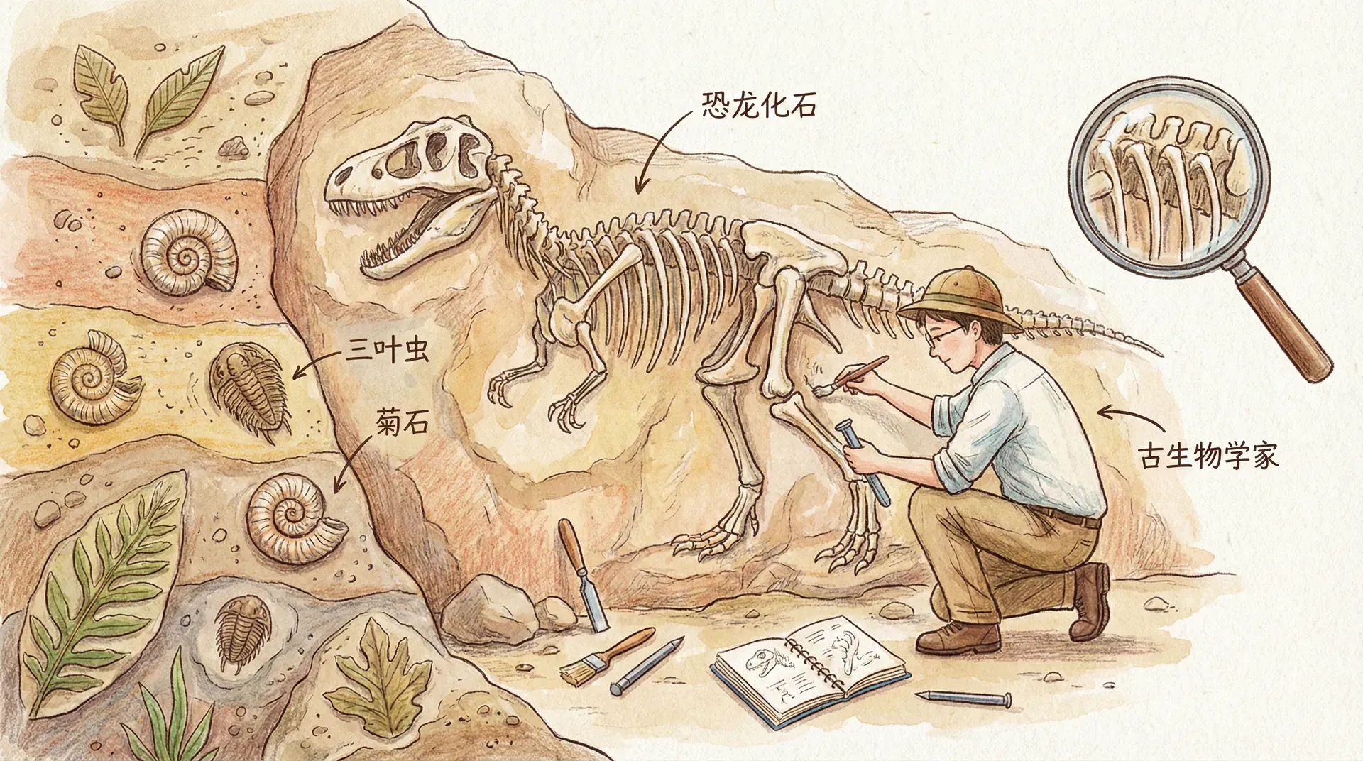 什么是化石呢?简单地说,化石就是保存在地层中的古代生物的遗体、遗物或遗迹。它们就像是远古生物留给我们的“照片”,记录着数百万年甚至数亿年前生命的模样。