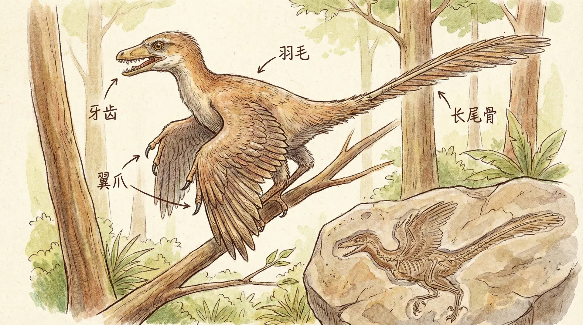 在生物进化的历史中,有一种极为重要的化石——始祖鸟(Archaeopteryx)。始祖鸟被誉为“连接恐龙和鸟类的桥梁”,它的发现为鸟类起源于恐龙这一观点提供了有力佐证。