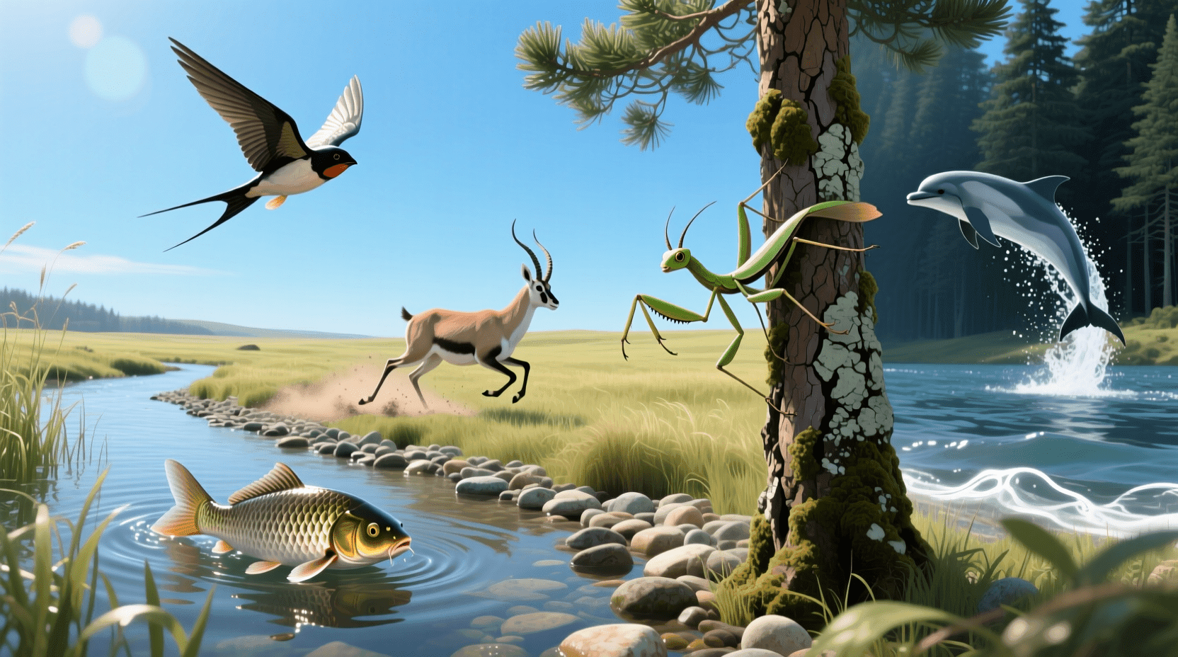 在自然界中,动物们展现出各种各样令人惊叹的运动能力。猎豹以每小时120公里的速度在广阔的草原上疾驰,捕捉猎物,展现出了陆地动物中最快的奔跑速度;苍鹰则在高空中敏锐地观测猎物,翅膀展开,在天空里自由翱翔,瞬间可以以极快的速度俯冲下来猎取食物;鱼儿在水中穿梭,不仅可以优雅地前进,还能极为灵活地转弯或迅速后退,躲避捕食者或追逐猎物;袋鼠依靠强壮有力的后腿进行跳跃,每一次弹跳都能轻松越过数米的距离,适应了澳大利亚大陆特殊的生活环境。还有飞鸟渡海迁徙、猴子凌空荡树、蛇类无足而行、昆虫振翅飞行……大千世界的动物们,各自发展出了独特的运动方式,彰显着生命的奇迹。