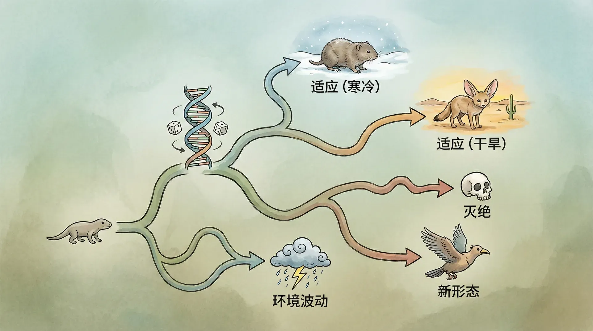 这个机制的精妙之处在于:虽然突变是随机的,但选择是定向的。随机过程加上非随机的筛选,最终导致了生物适应环境的表象。