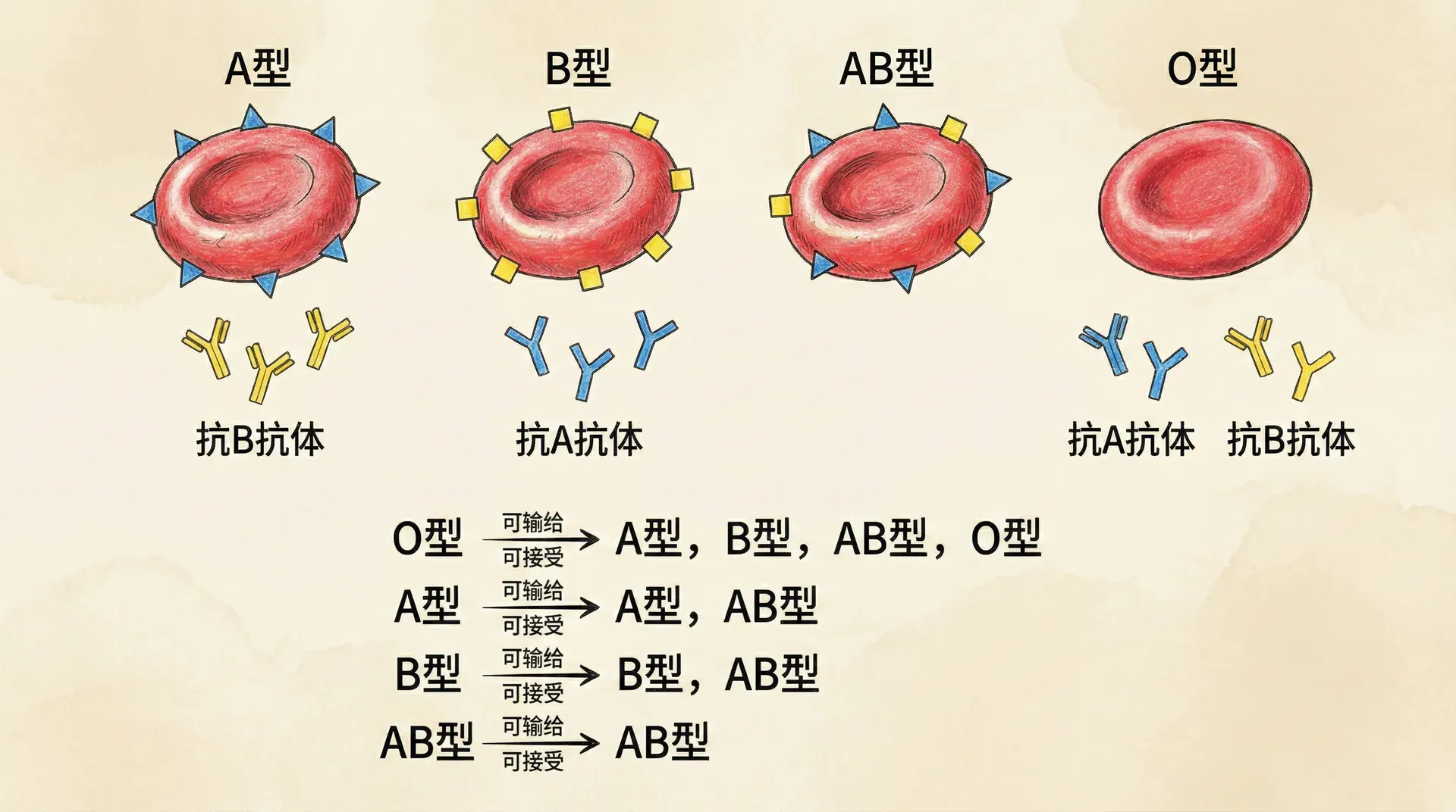 此外,ABO血型只是众多血型系统中的一种。在临床输血和移植时,常常还需考虑Rh血型系统等其他抗原。但ABO血型由于拥有清晰的遗传逻辑,成为遗传学教学和日常生活中最具代表性和实用意义的一类。有趣的是,研究还发现某些血型与疾病易感性、感染风险等存在一定关联性,这说明血型不仅仅影响输血匹配,也可能与人体健康有一定关系,显示出血型研究的更宽广价值。