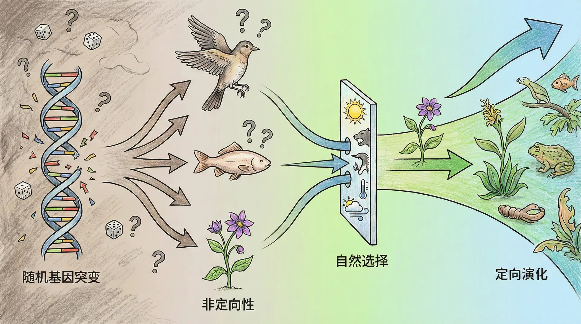 如果说基因突变是随机的,那么自然选择就是定向的。自然选择不会“创造”新基因,但它会决定哪些基因变异能够保留下来,哪些会被淘汰。