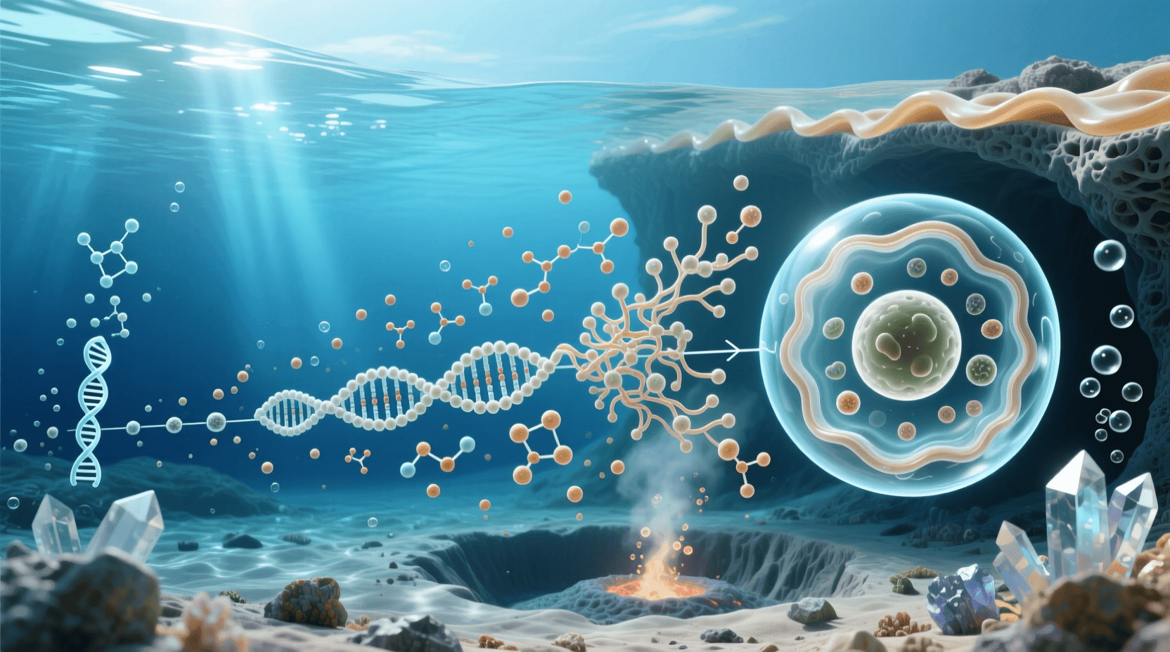 在大约38亿年前的某个时刻,地球的海洋就像是一个巨大的“化学实验室”。如果我们能够舀起一勺当时的海水,在显微镜下观察,会发现里面漂浮着各种各样的有机分子:氨基酸、核苷酸、简单的糖类。这些分子在水中游荡,时而聚集在一起,时而分散开来。