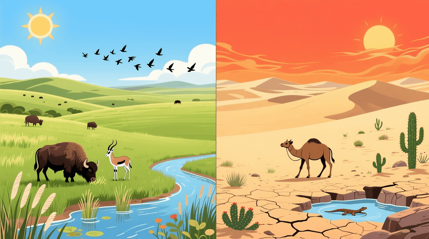 草原生态系统非常脆弱,容易因过度放牧、不合理开垦等人为活动而退化。当草原植被遭到破坏后,土壤失去保护,风蚀加剧,草原逐渐退化为荒漠,这个过程称为荒漠化。中国北方地区每年因荒漠化造成的经济损失达500多亿元。