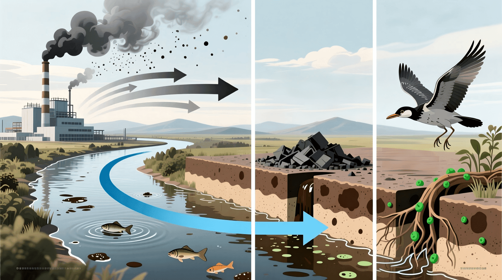 大气传输是污染物远距离迁移的重要方式。挥发性有机污染物和附着在大气颗粒物上的重金属可以随气流传播数千公里。中国北方的沙尘暴不仅携带大量的沙尘颗粒,还携带着农田土壤中的农药残留和重金属,影响着下风向的广大地区。