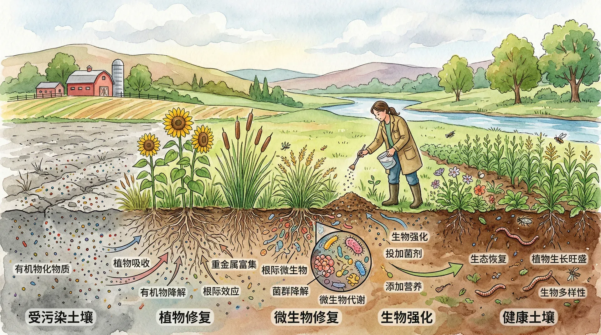 第二阶段(6-12个月):化学氧化后,向土壤中添加功能微生物菌剂和营养物质,进行生物强化修复。通过微生物的持续降解作用,将污染物浓度进一步降低到5mg/kg以下,达到修复目标。