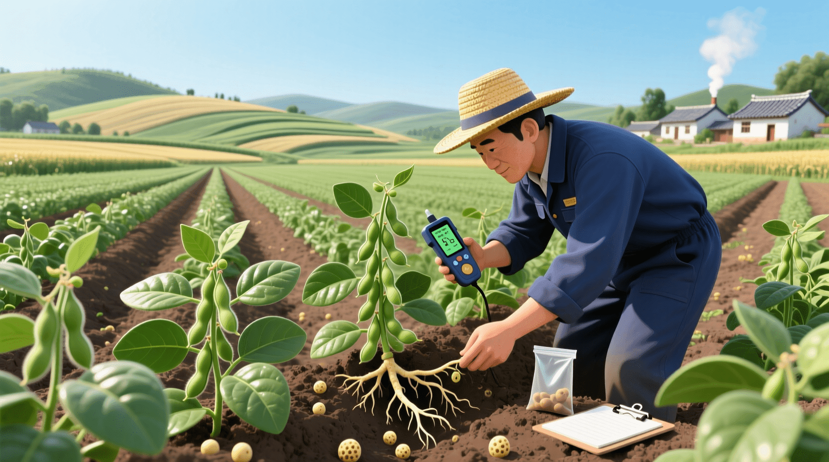 在东北平原的一片大豆田中,农民们注意到一个有趣的现象:种植大豆的土地不需要施加太多氮肥,土壤反而会变得更加肥沃。这得益于大豆根部的根瘤菌,这些微生物能够将空气中的氮气转化为氨,供植物利用。