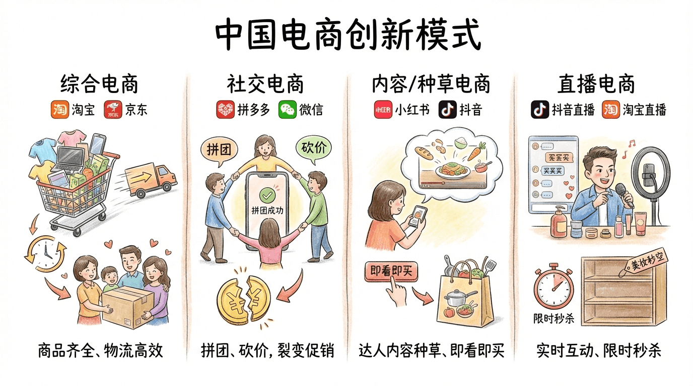 技术进步正重塑中国人的购物方式。移动支付、智能推荐和社交电商已成常态。以移动支付为例,2023年中国约\(90\%\)以上的零售支付由微信/支付宝完成,乡村集市也普及了二维码收款。电商平台算法推荐让用户进入了专属信息流,“猜你喜欢”极大地提升下单效率,也带来“信息茧房”风险。