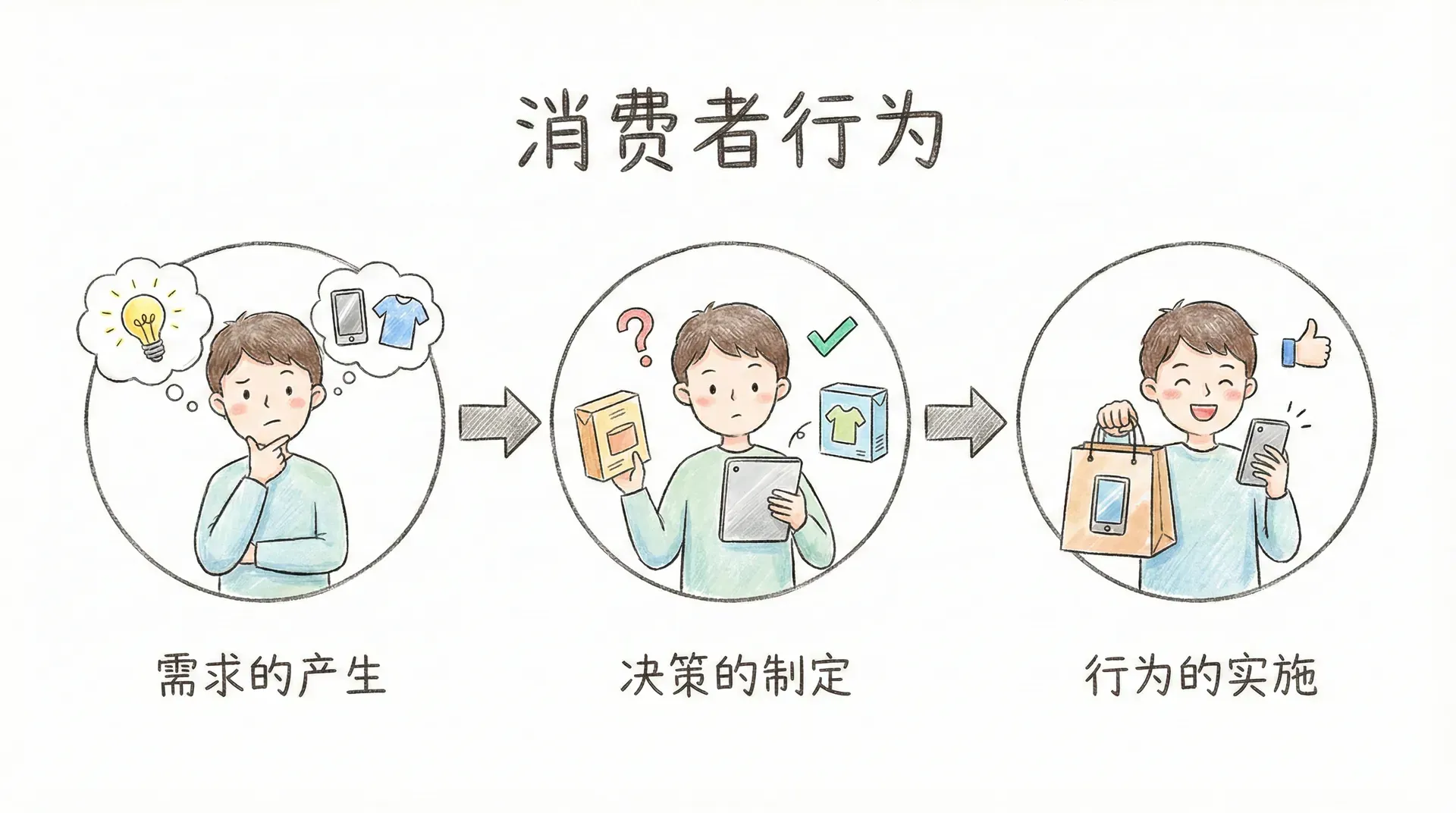 消费者行为是指个人、群体或组织为满足需求而选择、购买、使用和处置产品、服务、体验或观念的全过程。这个定义包含了三个关键要素:需求的产生、决策的制定和行为的实施。