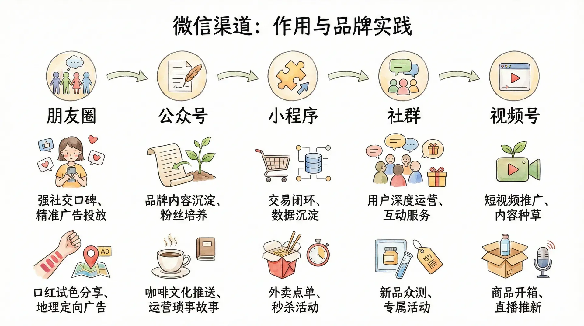 可以用下表梳理微信生态各渠道的核心用途: