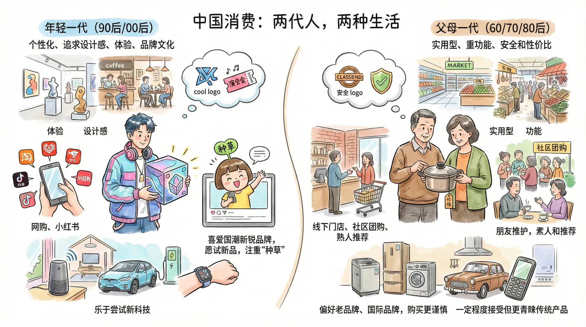 家庭成员的消费观存在显著代际差异。这些差异既增加了品牌营销的复杂性,也提供了创新的结合空间。
