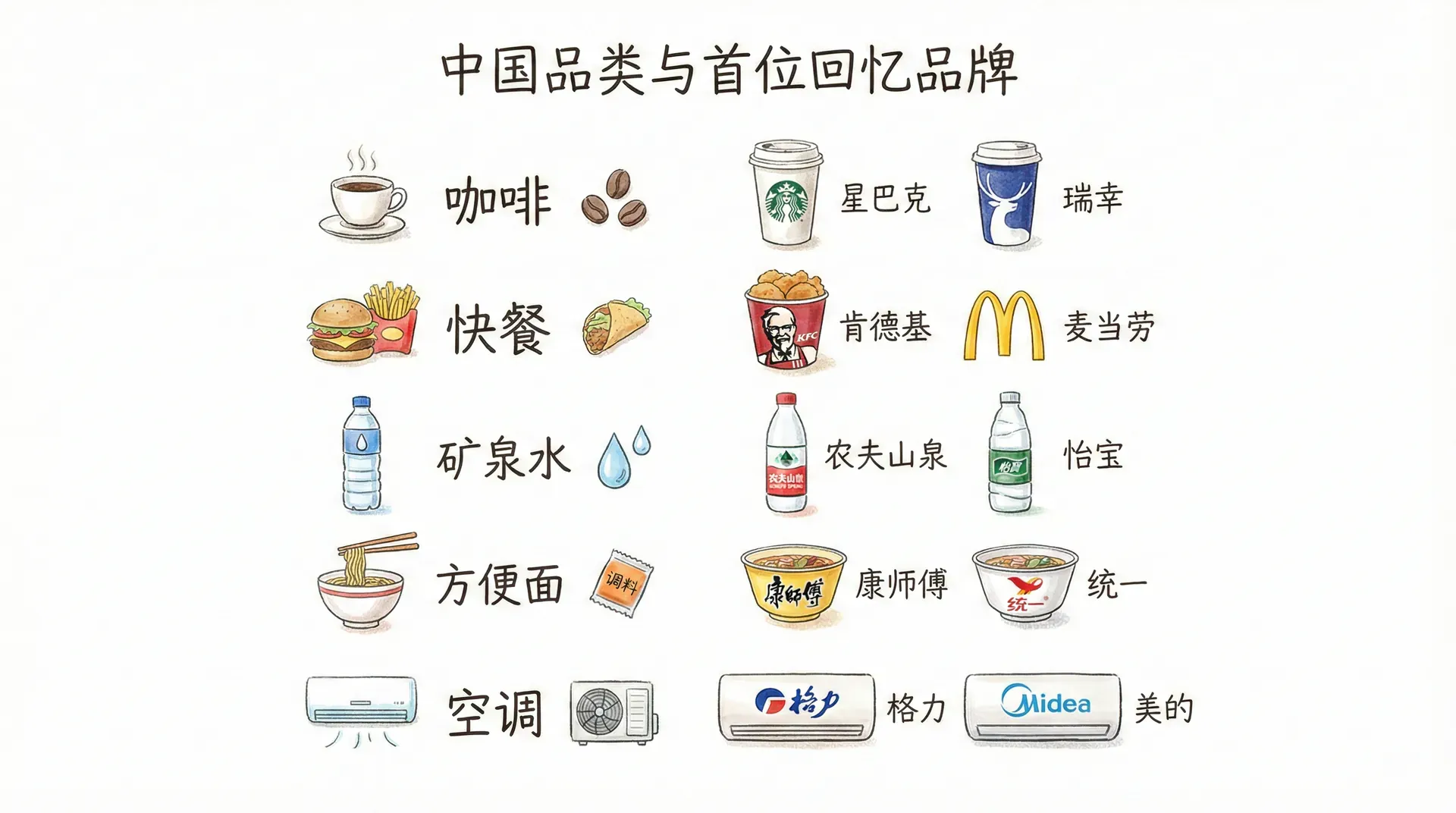 品牌回忆通常决定了消费者在购买前的预选清单,尤其是在“提到某一品类,你第一个想到谁?”这一经典场景中。例如,当中国消费者想到“新能源车”,很多人第一反应是比亚迪、蔚来、小鹏等;说到酱油,海天几乎成了代名词。首位回忆(Top-of-mind awareness, TOMA)的重要性体现在,能够首先被想到的品牌更容易成为首选。这个地位通常来自企业长期的市场投入和持续曝光。