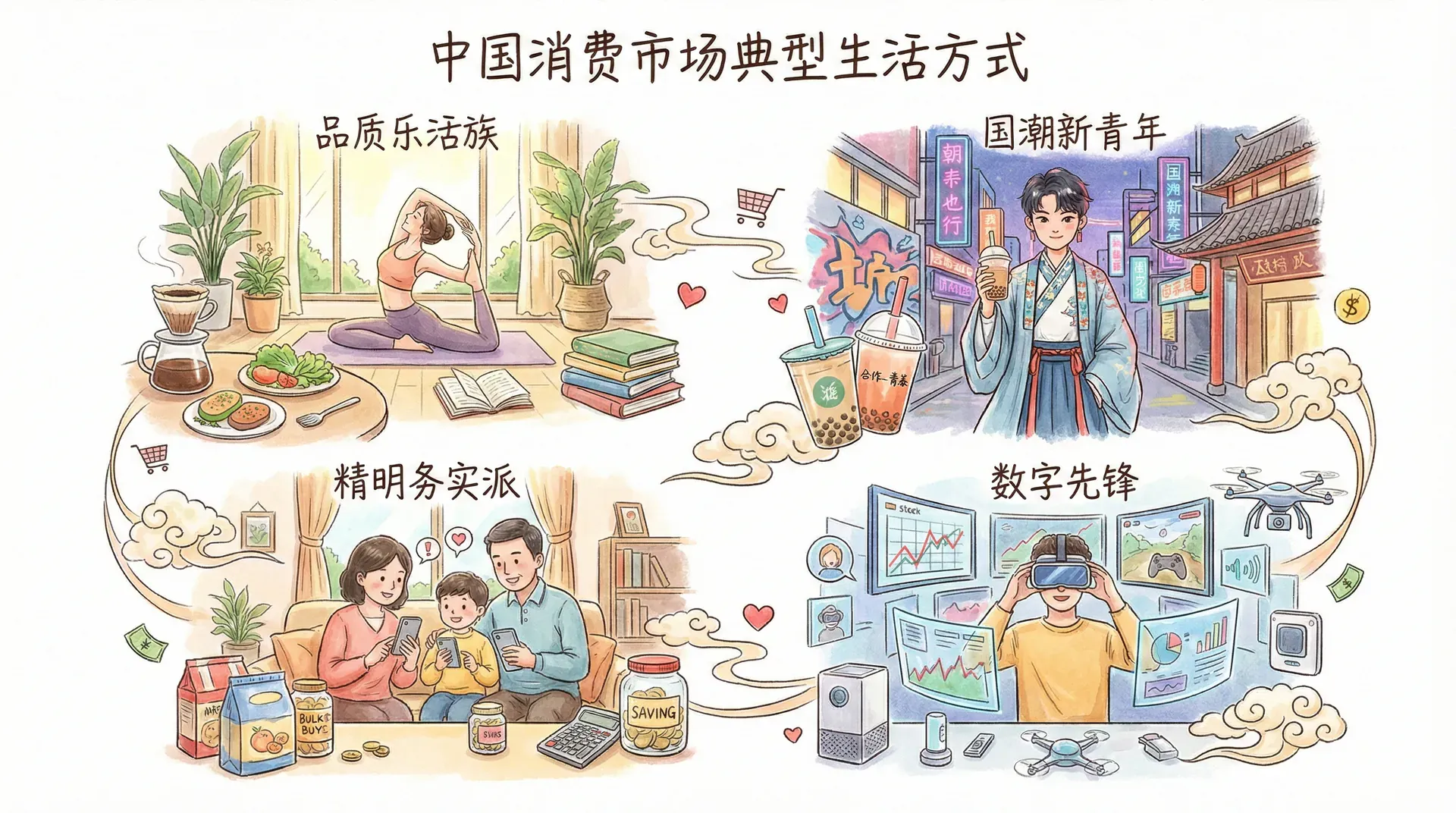 随着经济、文化和社会环境的变化,中国消费市场已显现出丰富多样的生活方式特征。根据大量市场调研和消费行为分析,可以将中国消费者主要划分为以下几种典型生活方式类型,每一类都展现出独特的消费习惯、品牌偏好和价值追求。