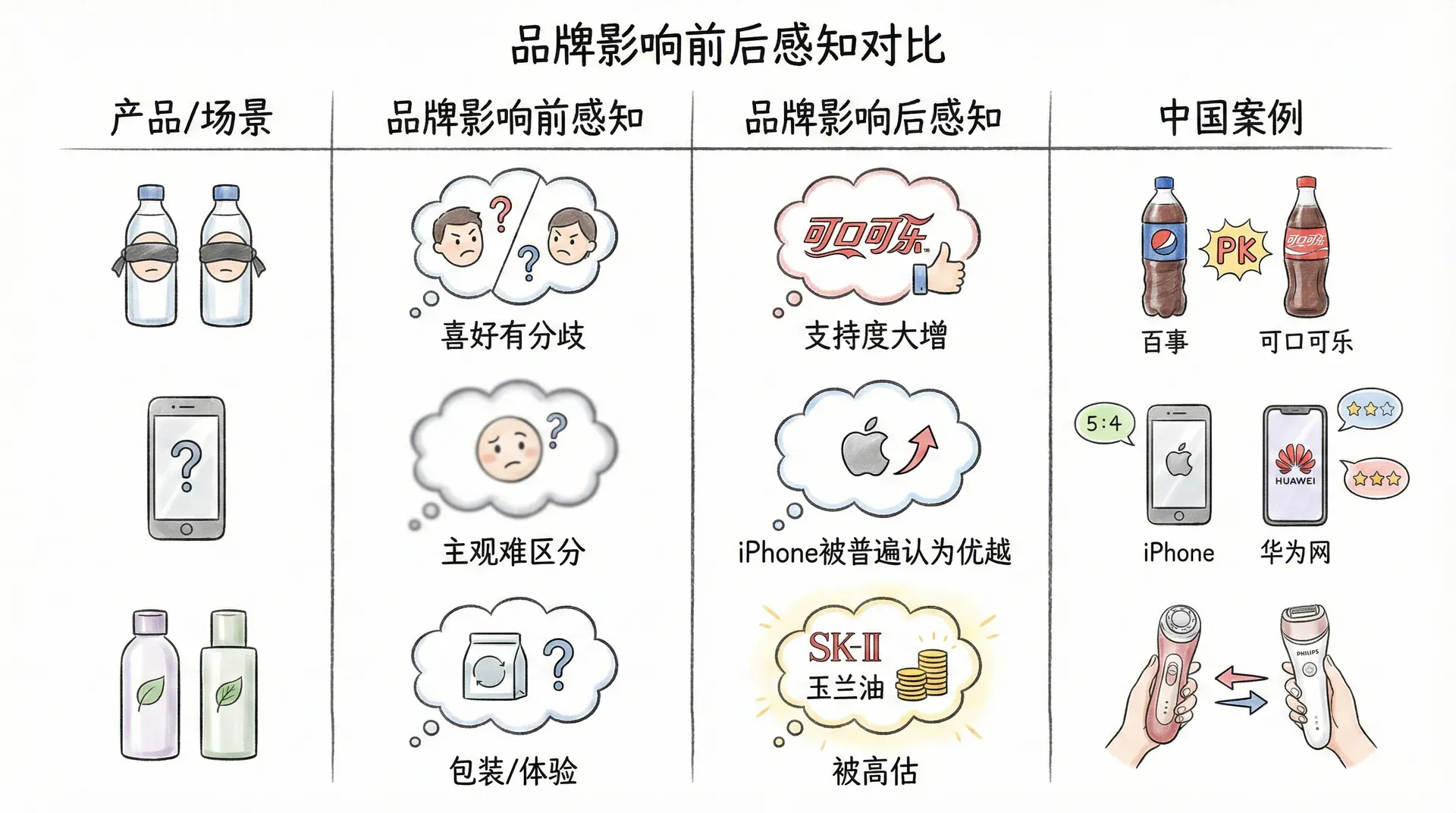 感知不是客观的复制,而是主观的建构。消费者的期望、经验、情境都会影响感知。价格影响质量判断,品牌改变味觉体验,环境提升产品价值。营销者需要理解这些知觉推断,设计能够引导正面感知的策略。