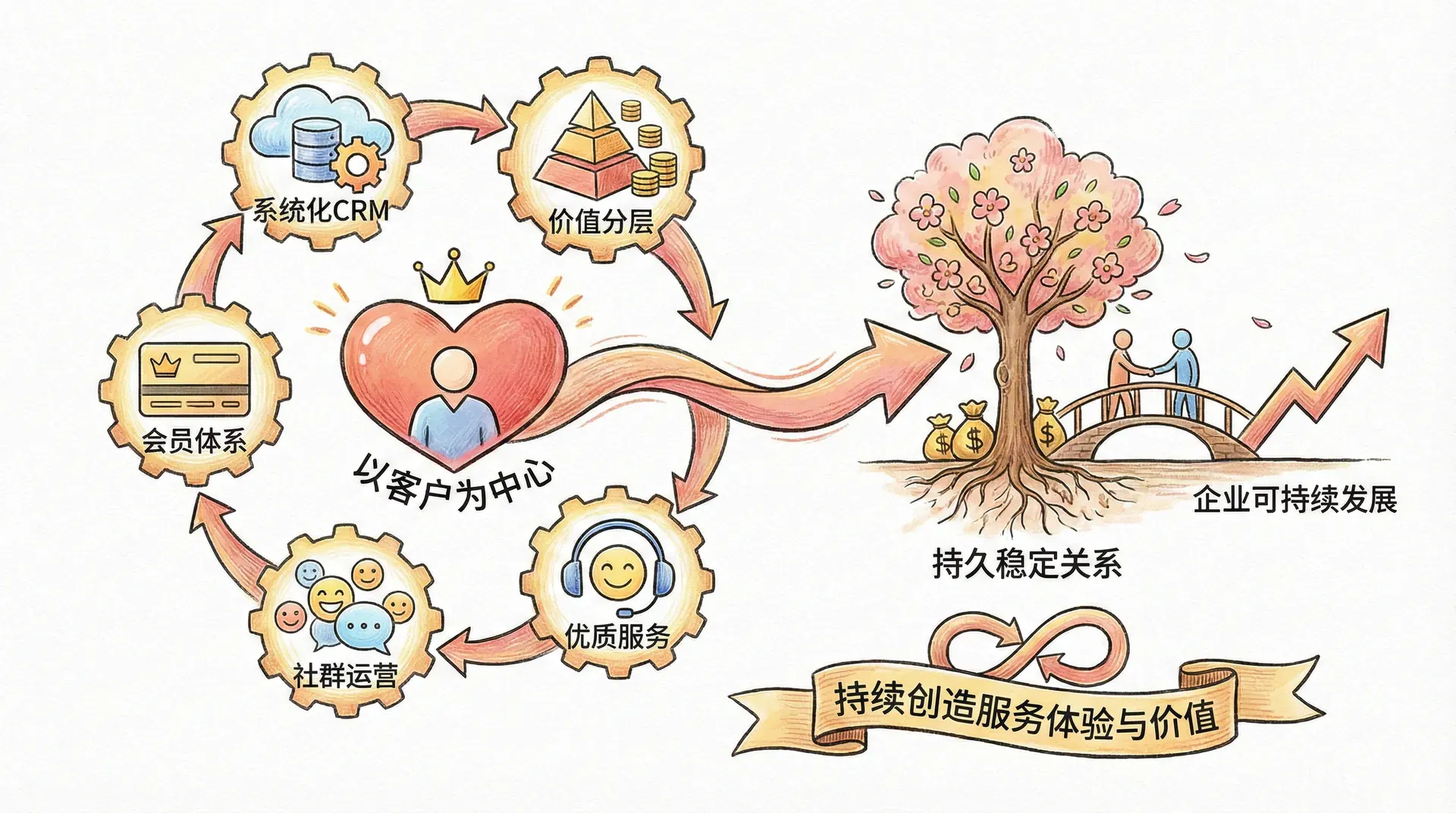数字化时代下,系统化的CRM(客户关系管理)、科学的客户价值分层、精细化会员体系、活跃的社群运营与优质客服服务相结合,助力企业与客户建立持久、稳定且高质量的合作关系,实现客户终身价值最大化与企业可持续发展。归根到底,客户关系管理的本质始终是以客户为中心,不断理解客户需求,为客户持续创造超越期待的服务体验与价值。