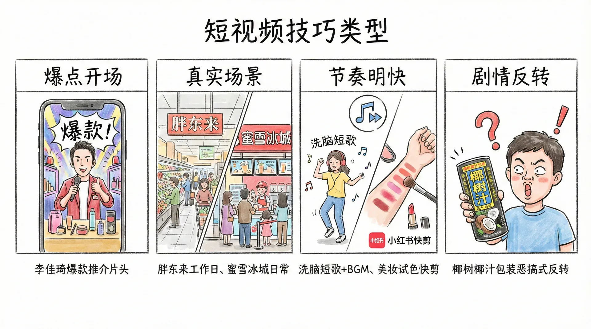 下面总结短视频常用创作技巧: