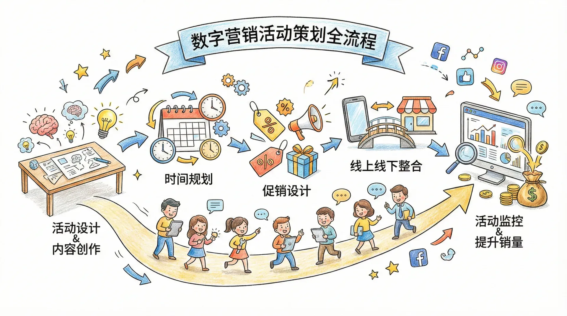 数字营销活动是品牌与消费者互动的重要桥梁,也是企业推广产品、提升销量的关键手段。从双十一购物节到品牌周年庆,从新品发布会到日常促销,每一次成功的营销活动背后都有精心的策划和执行。本章将带领大家深入了解如何从零开始策划一场完整的数字营销活动,掌握活动设计、内容创作、时间规划、促销设计、线上线下整合以及活动监控的全流程技能。