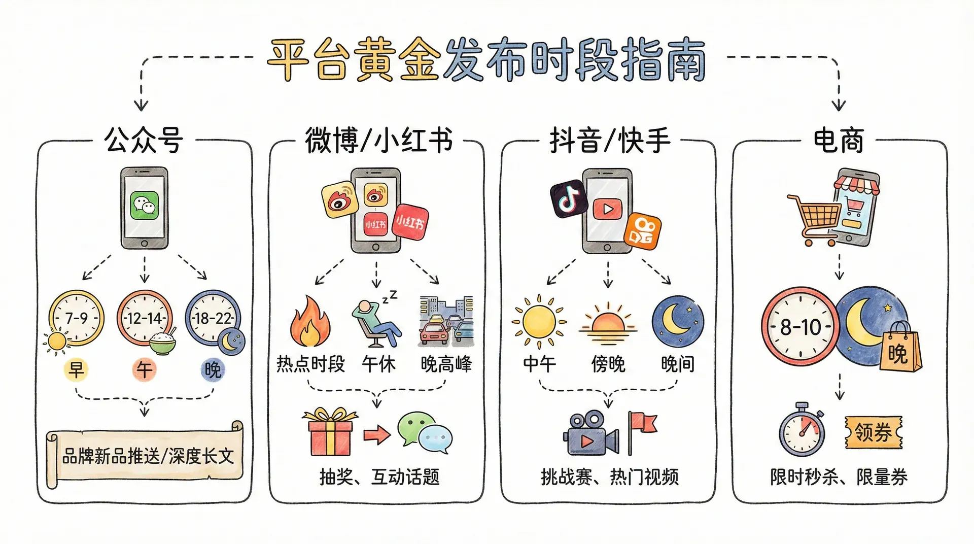 不同平台和业态有各自活跃高峰,合理发布时间能提升曝光和转化: