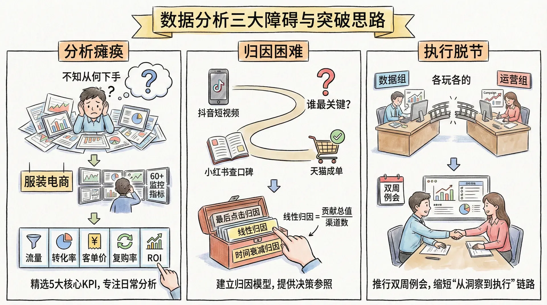 掌握KPI设定后,下一步是如何有效分析背后数据。本节介绍常见数据分析视角与方法,核心是透过数字表象找问题、抓机会。