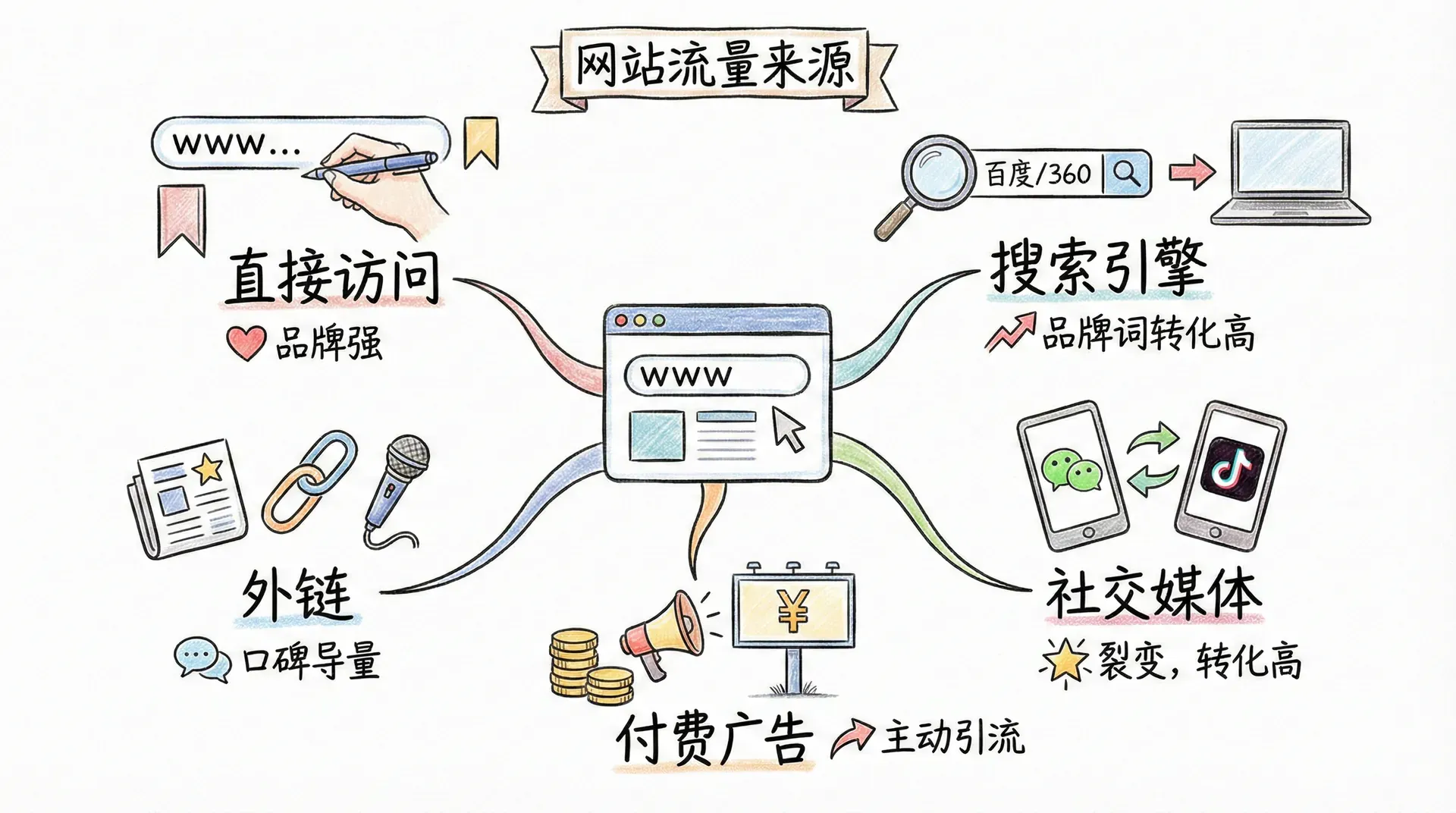 占比数据:如某教育APP流量来源,可用饼图或表格呈现: