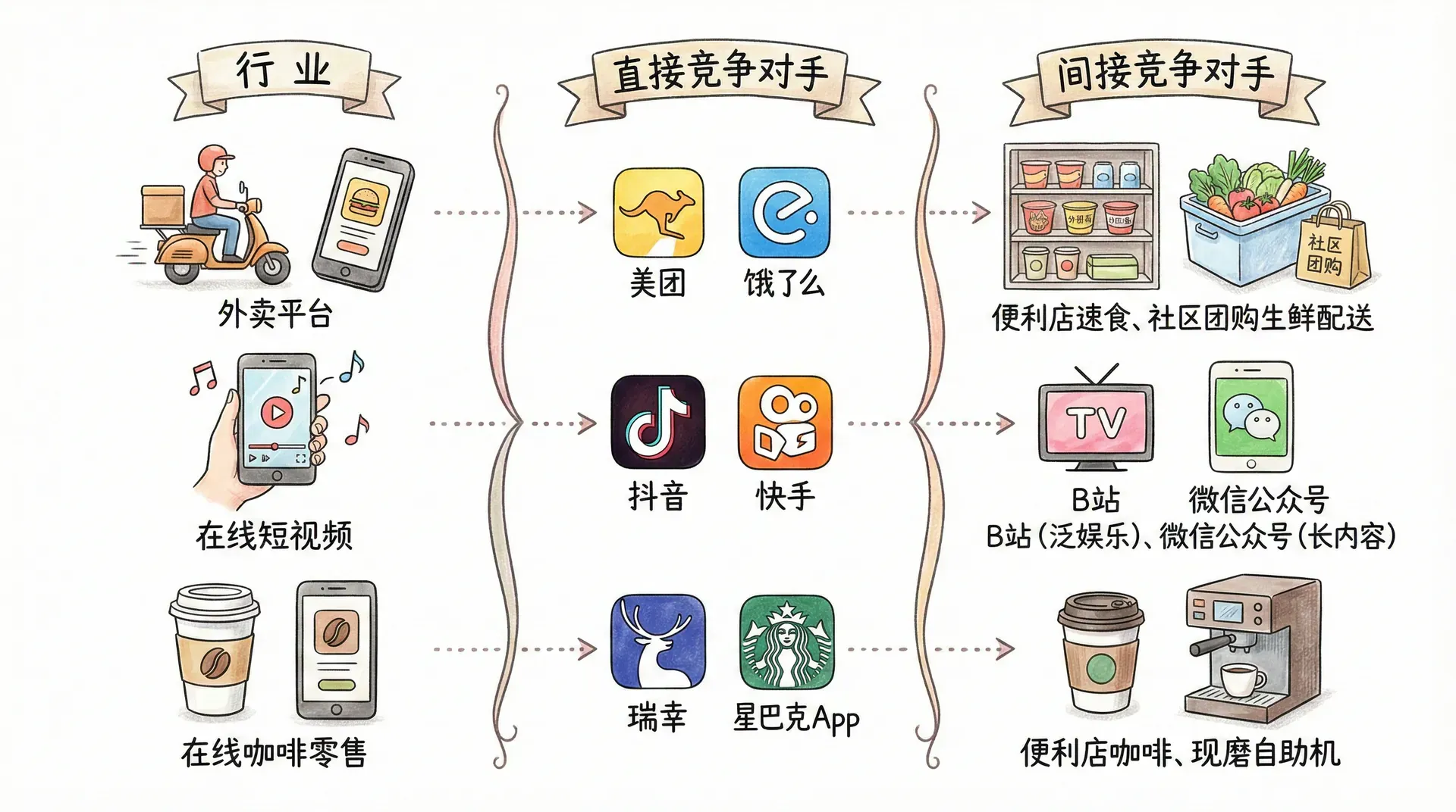 竞争范围界定的精准程度,直接决定后续分析的深度与针对性。以外卖行业为例,美团和饿了么为直接对手,但便利蜂、叮咚买菜、盒马鲜生等也可能成为抢夺“即时餐饮”需求的间接威胁。