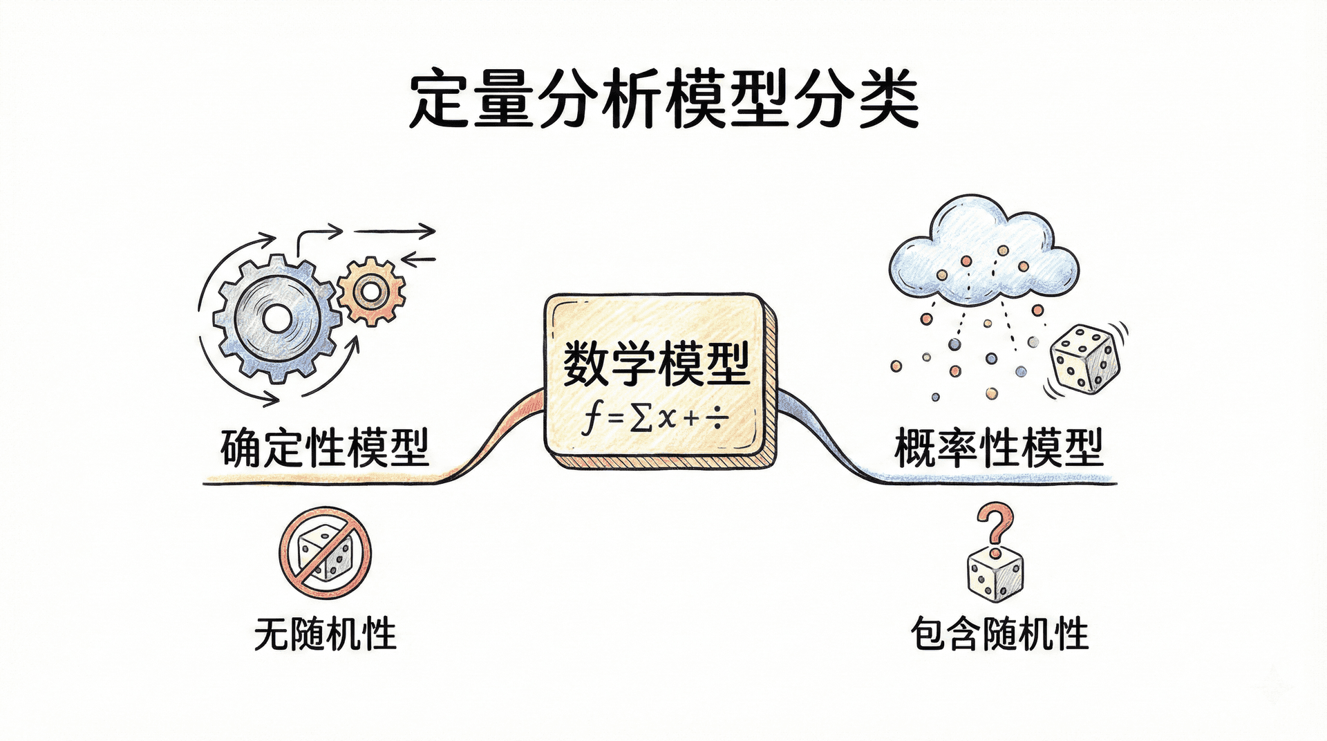 所有定量分析都依托于数学模型。根据模型中是否包含随机性,可以分为两大类:确定性模型与概率性模型。