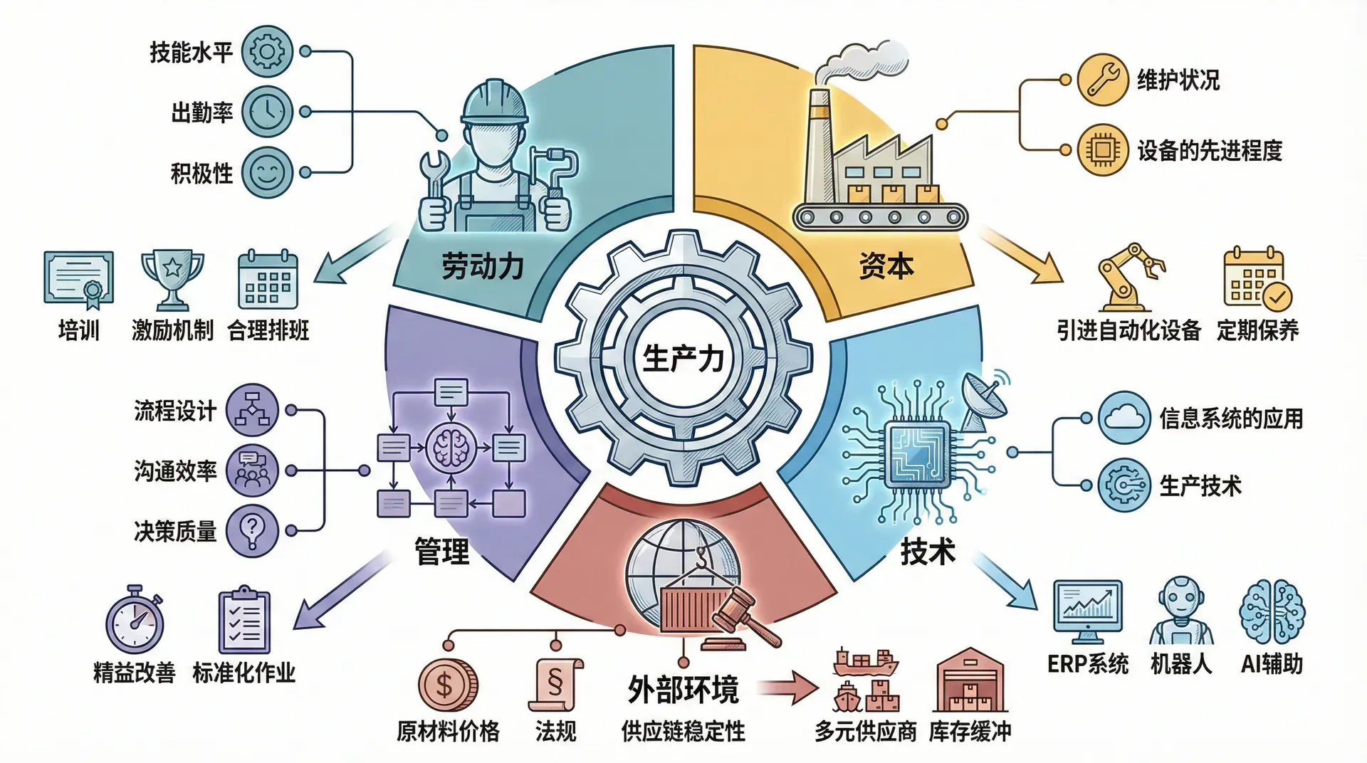 生产率的高低不是一成不变的,它受到多种因素影响: