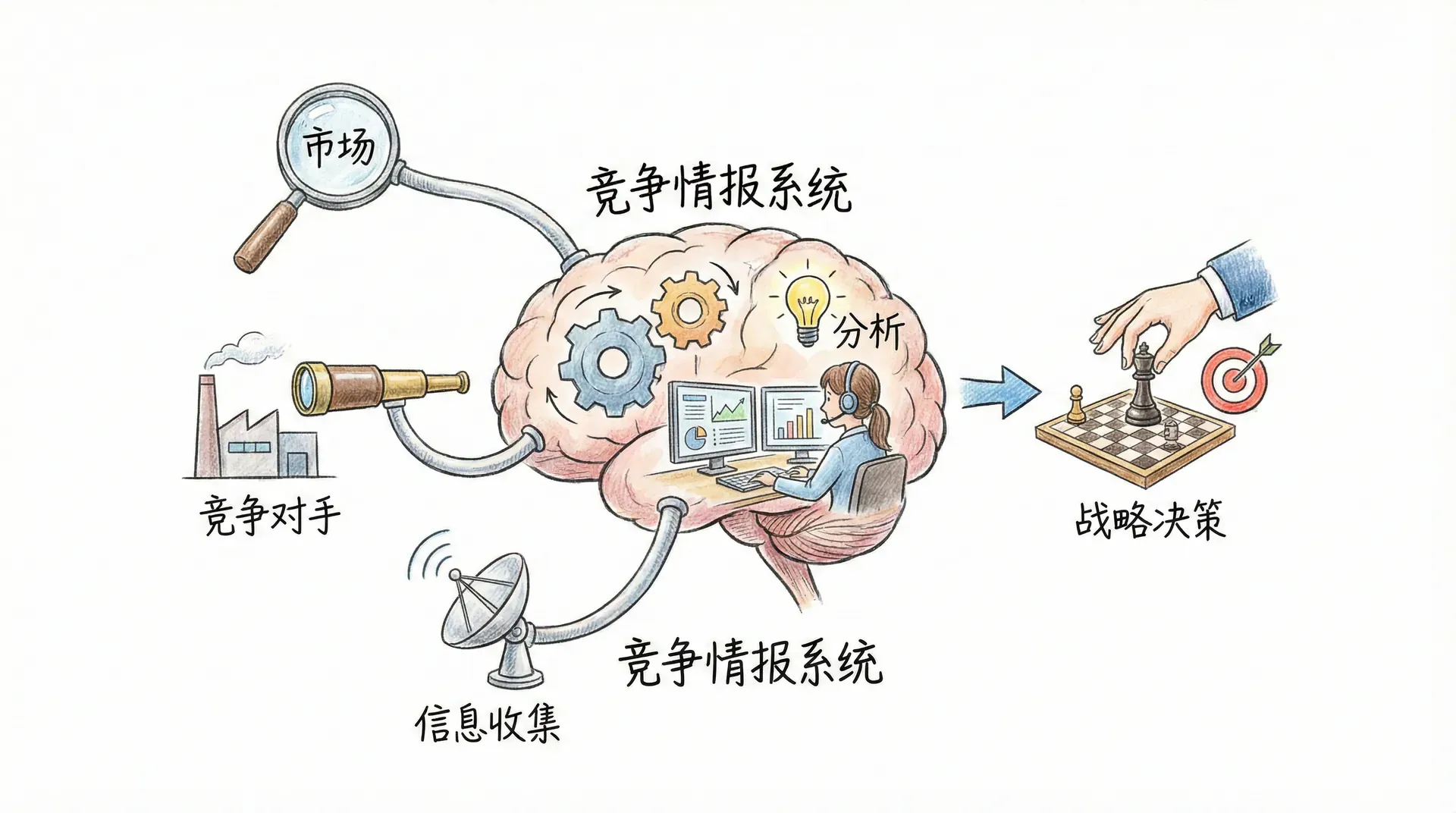 在信息时代,掌握准确及时的竞争情报对企业的战略决策至关重要。竞争情报系统是企业有系统地收集、分析竞争者信息的机制。