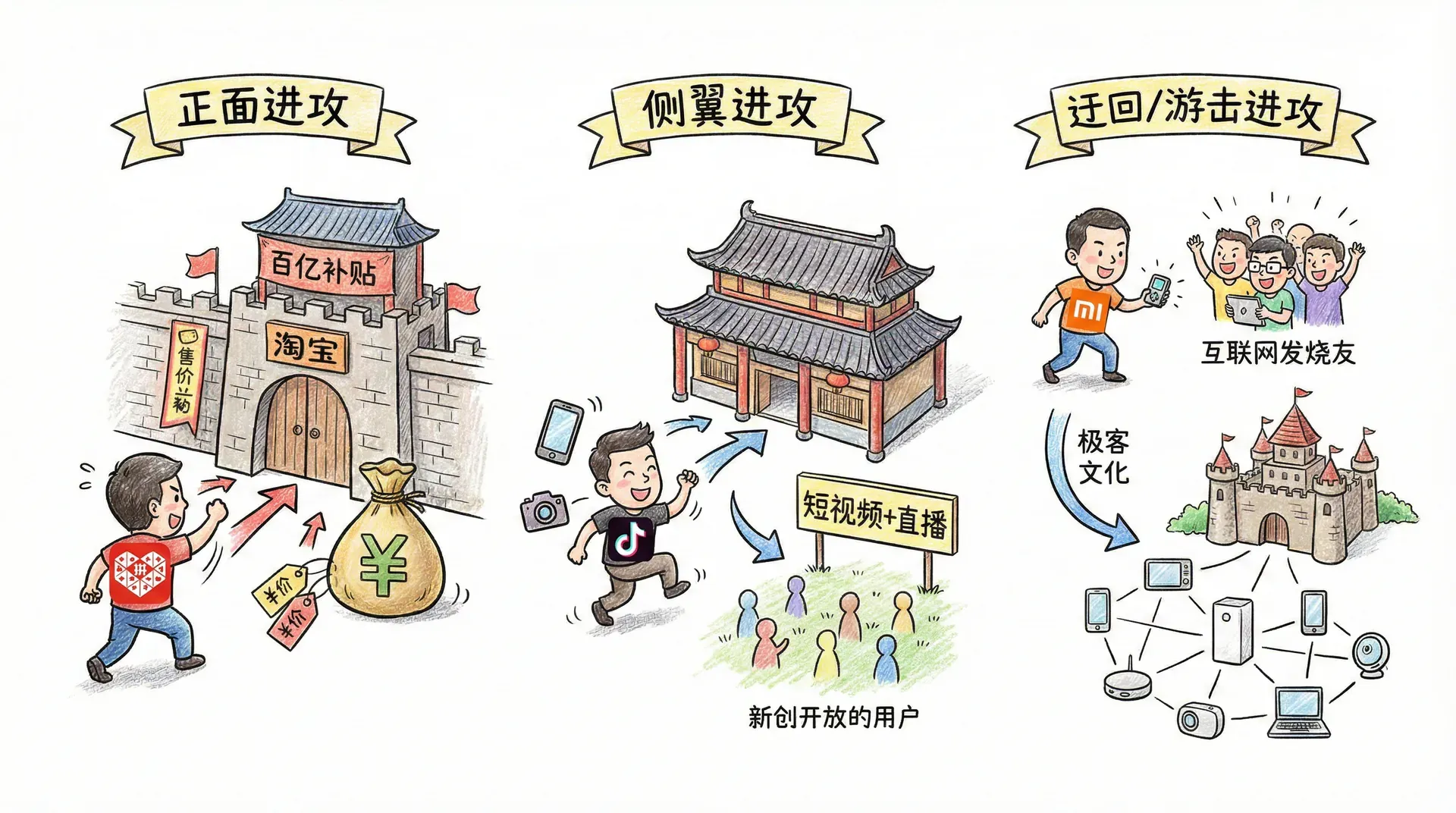 在传统电商红海中,阿里和京东主攻一二线城市“品质消费”,拼多多则切入三四线及农村市场,通过“社交拼团+直连工厂”模式创造出新消费场景,实现价格极致低廉和需求爆炸式增长。