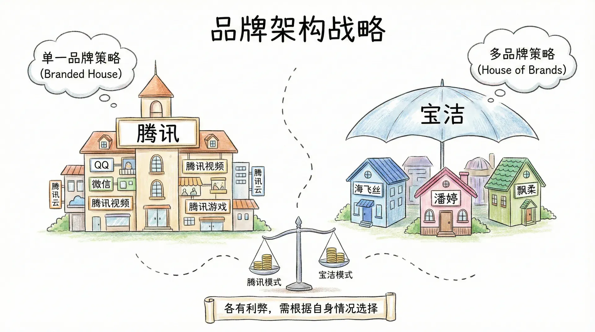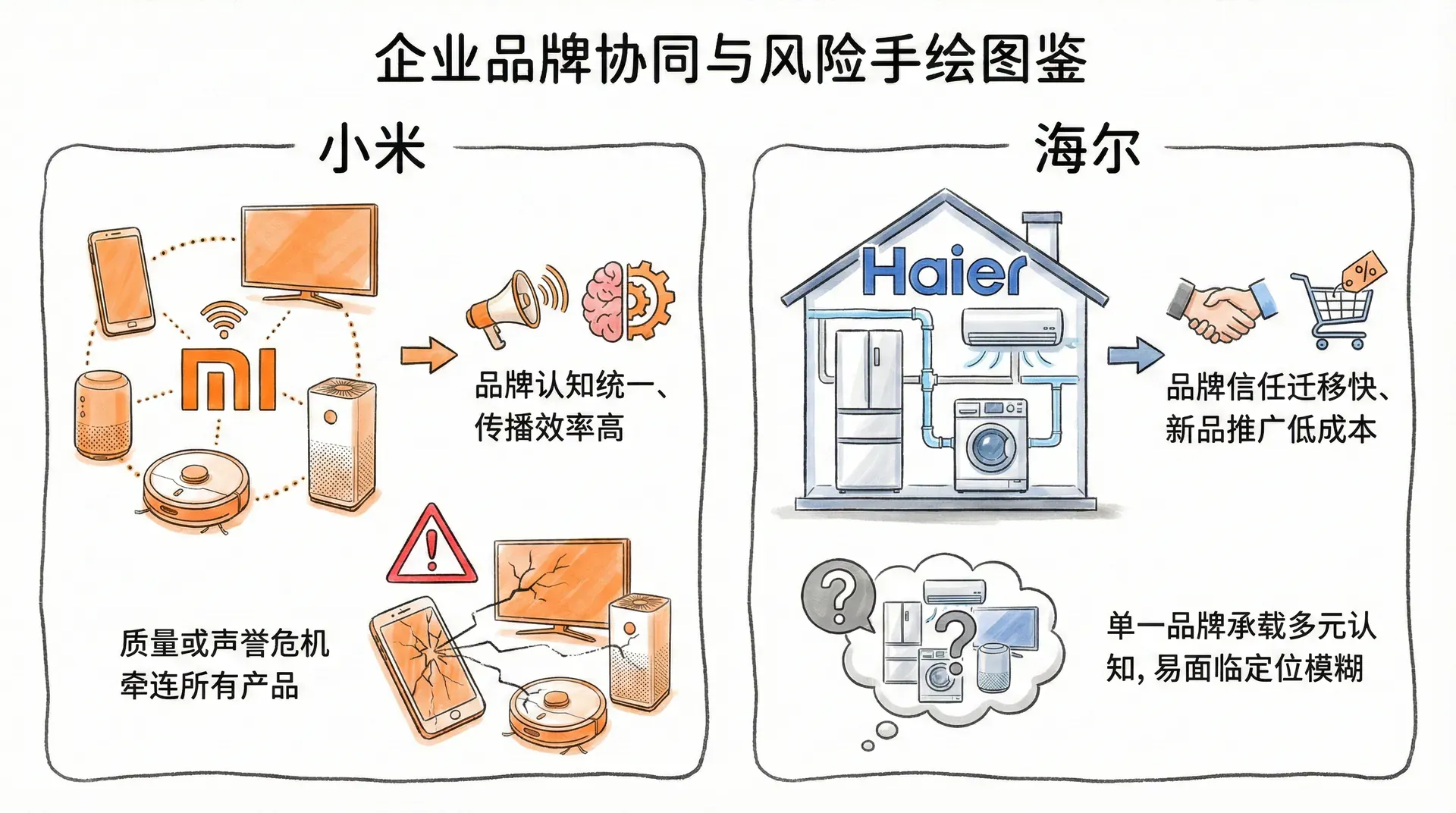 单一品牌架构的主要优点在于可以最大化每一分品牌投资的协同效益,实现统一强势的品牌心智。但也存在显著风险:如果某一产品线发生重大质量或负面事件,则可能“牵一发动全身”,拖累整个品牌声誉。