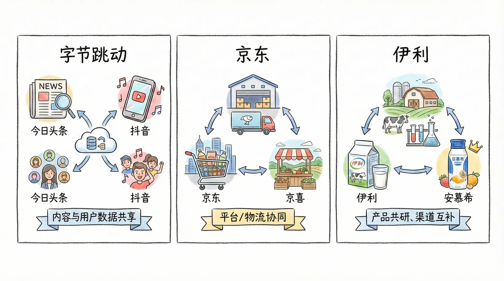 阿里巴巴集团:通过“阿里巴巴”集团品牌为淘宝、天猫、支付宝等业务赋能,各子品牌保留业务独立性,同时在集团级活动或战略合作时强调统一。